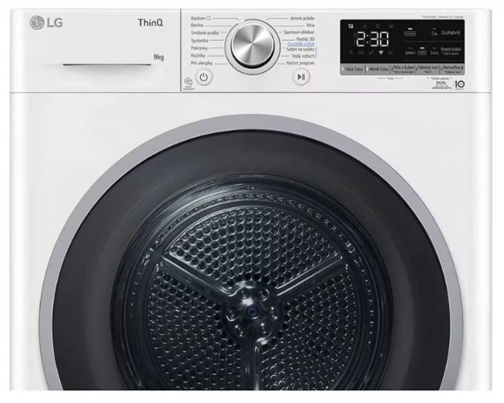 LG volně stojící kondenzační 9 kg pro 3–4 osoby s odvodem do odpadu vhodné do bytu (62–65 dB) 62 dB 1.66 kWh 105 kWh otočný knoflík s dotykovým ovládáním 85 cm 60 cm 66 cm 56 kg 14
