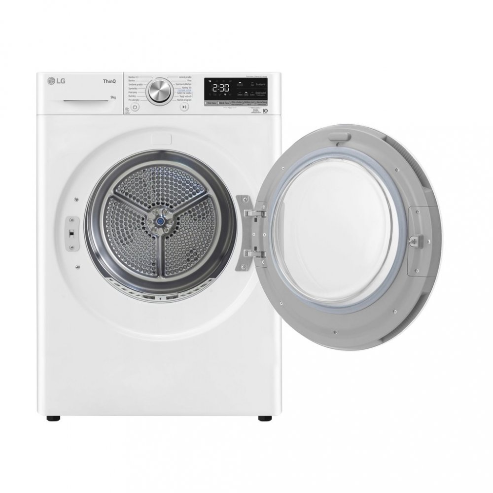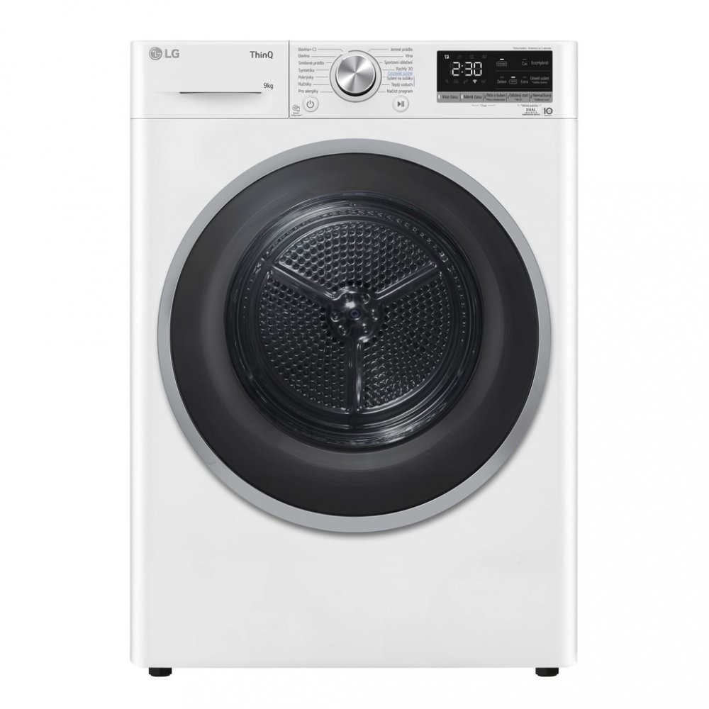 LG volně stojící kondenzační 9 kg 62 dB 14 A 194 kWh 105 kWh A C 85 cm 60 cm 66 cm 56 kg