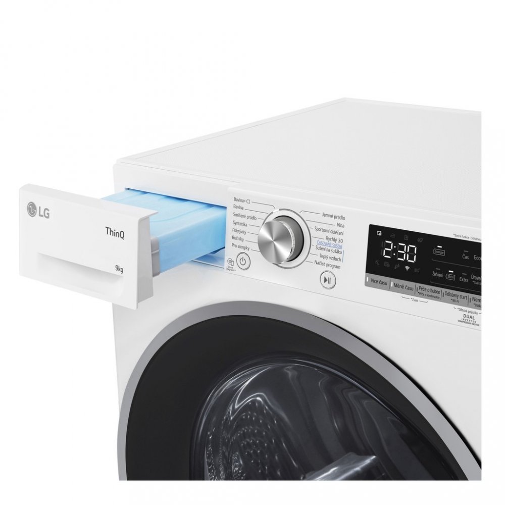 - LG ThinQ + Wi-Fi připojení – ovládání na dálku, načtení programu a inteligentní diagnostika (Smart Diagnosis)