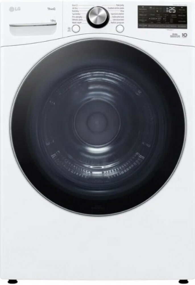 Sušička prádla, kapacita 18 kg, kondenzační s tepelným čerpadlem, energetická třída D, hlučnost 63 dB, AI DRY, LG ThinQ + Wi-Fi připojení