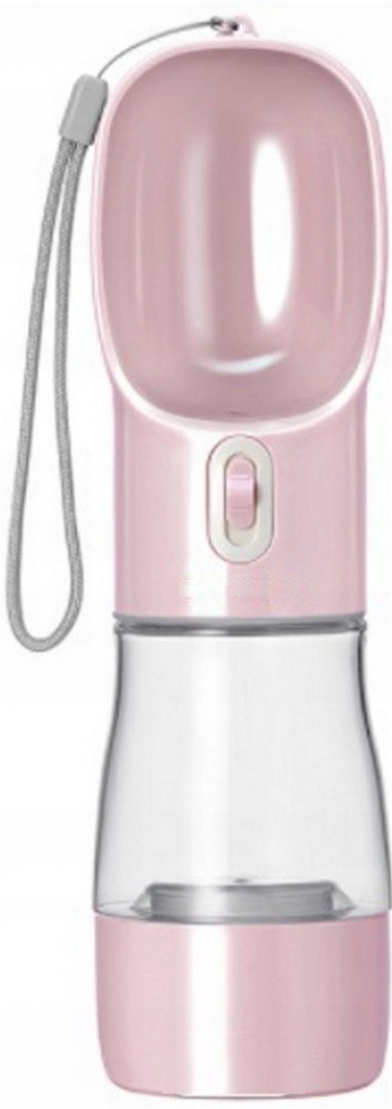 Přenosná psí láhev se zásobníkem na jídlo - RŮŽOVÁ