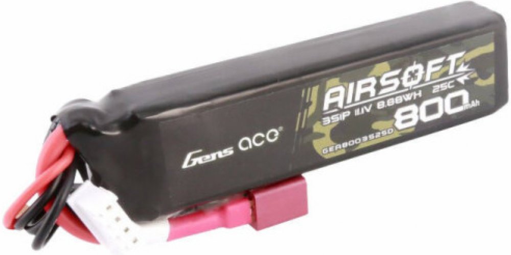 Gens Ace Lipo 800MAH 11.1V 25C 3S1P Airsoft Gun Lipo baterie s T konektorem (Deans) Plug