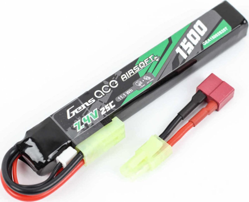 Gens ace 25C 1500mAh 2S1P 7,4V Airsoft Gun Lipo baterie s mini konektorem Tamiya Plug.