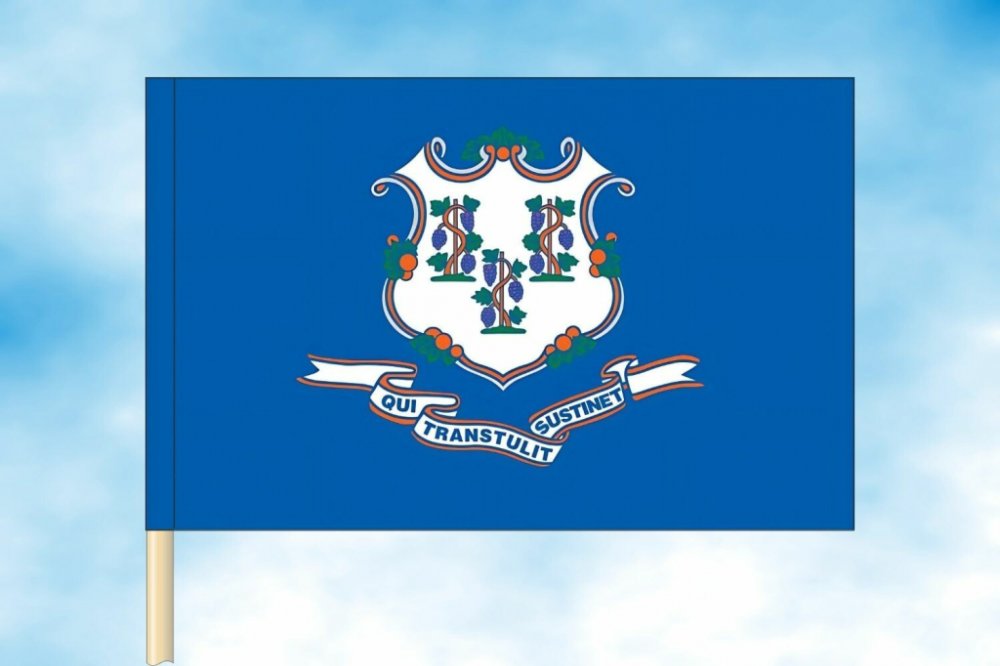 Vlajka státu Connecticut byla oficiálně přijata 9. září 1897. Na modrém poli se nachází bílý štít se zlatým lemem, nesoucí tři zelené vinné révy, každou se třemi hrozny. Révy symbolizují tři původní osady – Hartford, Windsor a Wethersfield, které položily základ státu, a zároveň vyjadřují růst a požehnání. Pod štítem je bílo-zlatá stuha s latinským mottem „Qui Transtulit Sustinet“, což znamená „Ten, kdo přenesl, udrží“ – odkaz na víru osadníků v Boží ochranu při zakládání kolonie.