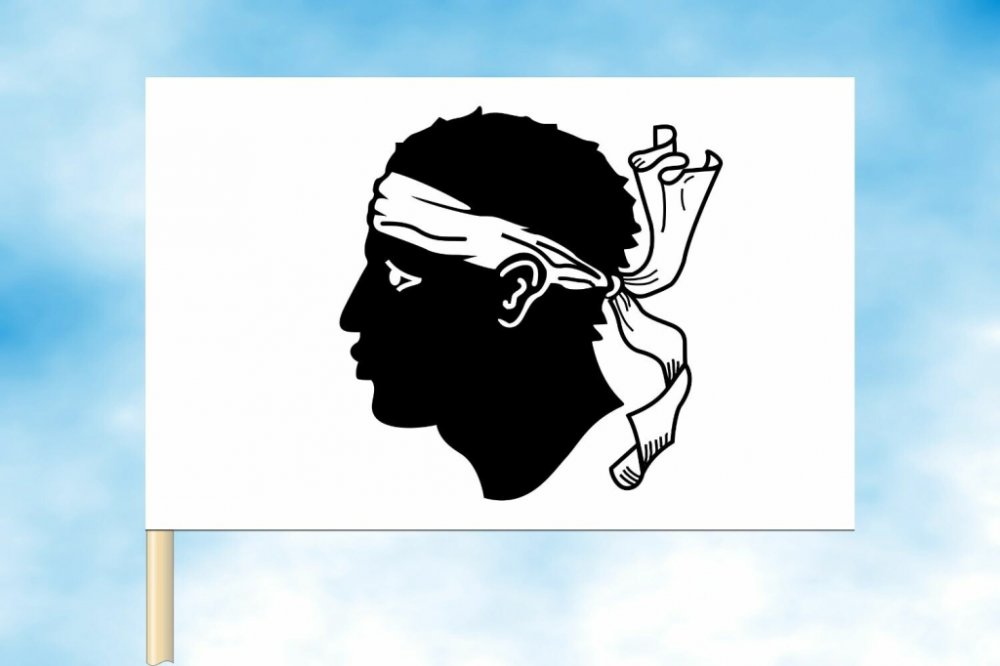 Ikonická vlajka Korsiky (Collectivité de Corse), známá v korsičtině jako "A Bandera Testa Mora" (Vlajka s mouřenínovou hlavou), představuje oficiální symbol Korsiky, středomořského ostrova.