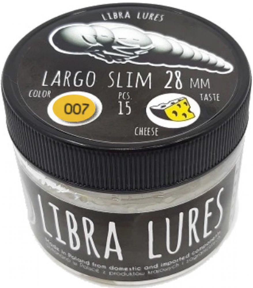 Largo je věrná imitace hmyzí kukly, která tvoří pokrm řady druhů ryb. Byla navržena mistrem světa v přívlači k lovu ryb jak na řece, tak na stojaté vodě na vodách typu Trout Area. Po minuloročních testech je jasné, že si získá mnoho fanoušků. Jako všechny nástrahy Libra Lures je i Largo nadipována v silném atraktantu s příchutí sýra/krillu.