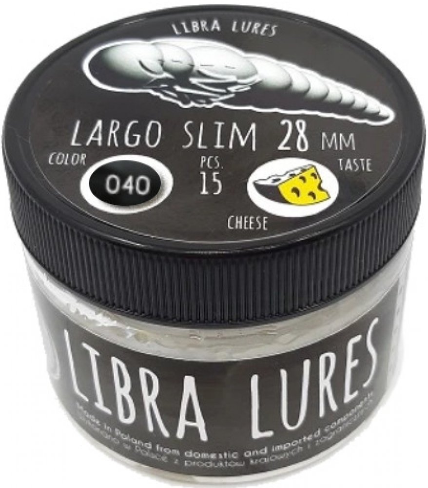 Largo je věrná imitace hmyzí kukly, která tvoří pokrm řady druhů ryb. Byla navržena mistrem světa v přívlači k lovu ryb jak na řece, tak na stojaté vodě na vodách typu Trout Area. Po minuloročních testech je jasné, že si získá mnoho fanoušků. Jako všechny nástrahy Libra Lures je i Largo nadipována v silném atraktantu s příchutí sýra/krillu.
