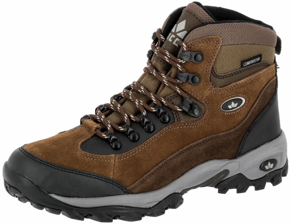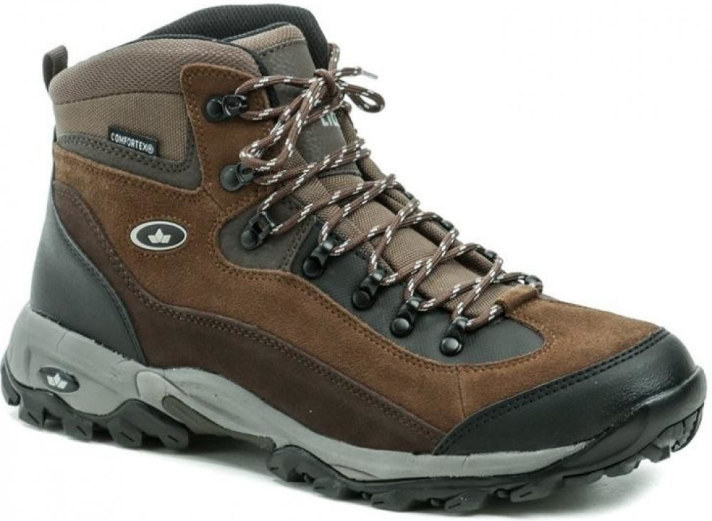 Lico kotníkové semiš na středně náročný terén na vícedenní turistiku hnědá pohorky Milan Comfortex na šněrování se střední výbavou na středně náročnou turistiku se středně tuhou podešví s obsázkou na špičce a patě ostatní gumové směsi s výstuhou u prstů
