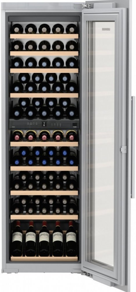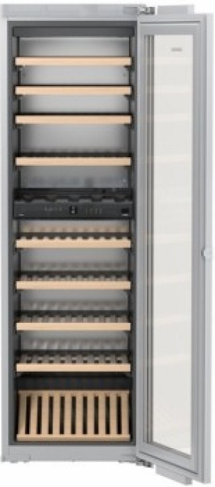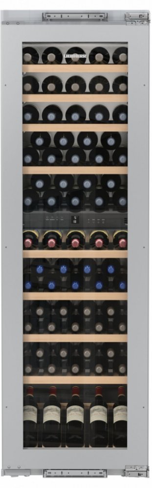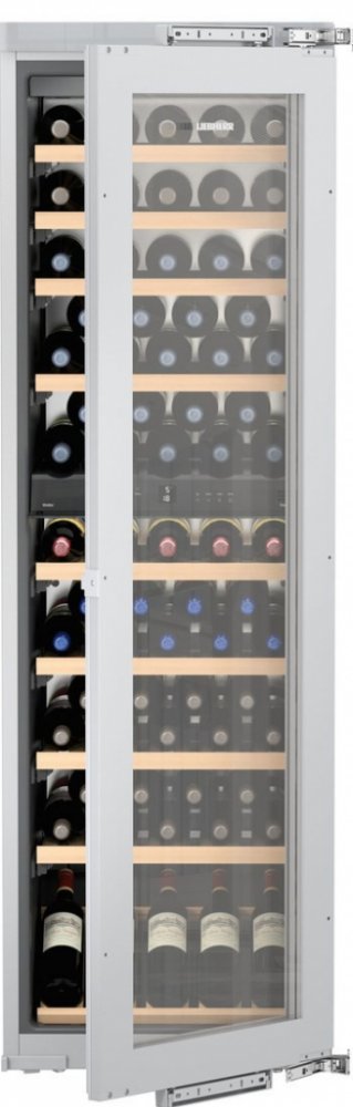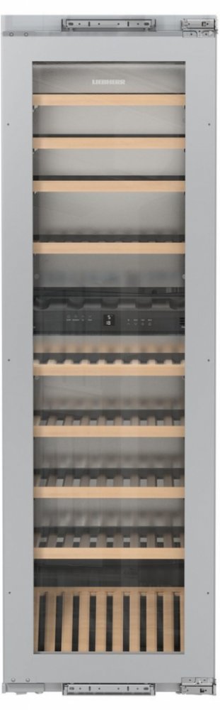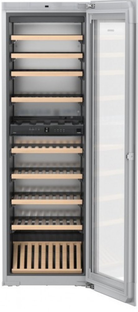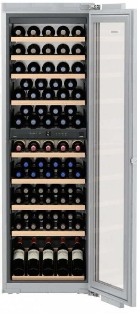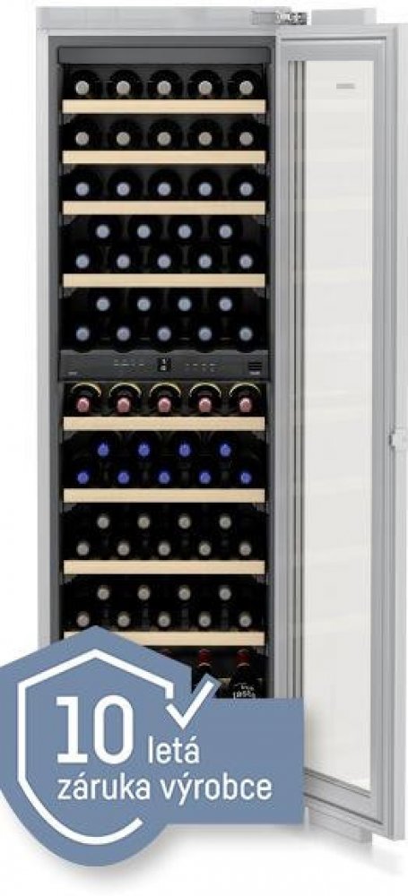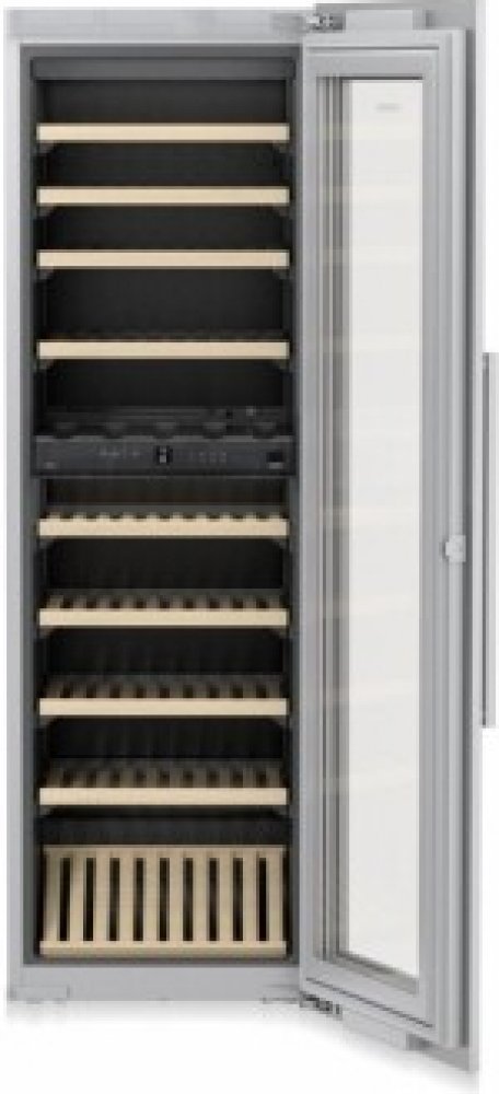 Vestavná temperovaná chladnička na víno - dvouzónová, Objem 259l, 80 lahví, 32dB(A), 10x police, 8x teleskopické pojezdy, rošty z bukového dřeva, příprava pro nábytkový rám nebo nerez rám