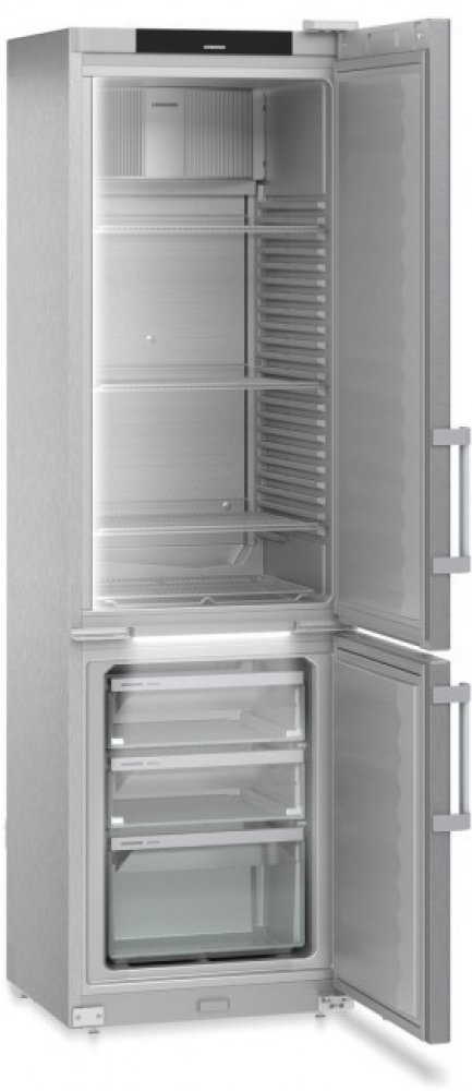 Profi kombinace chladničky a mrazničky,celkový objem 377 (267 + 110) litrů; uzamykatelné plné dveře chladničky, plné dveře mrazničky; LED osvětlení; jeden kompresor, samostatně regulovatelné chladicí okruhy; SuperCool a SuperFrost; chladicí část: ventilační chladicí systém, mrazicí oddíl: dynamický NoFrost chladicí systém; uzamykatelné plné dveře Hardline; rozsah chlazení: + 1 / + 15 °C až -9 °C / -28 °C; vlhkost nastavitelná ve 3 stupních v chladicím prostoru; elektronické ovládání v ČJ; digitální zobrazení teploty; funkce optického a akustického alarmu: vnitřní teplota je příliš vysoká a dveřní pokud zůstávají otevřené; funkce zámku kláves; vnější nerezový plášť; jednodílný tepelně tvarovaný polystyren (ekologický) vnitřní plášť; v chladničce: 3 šedé ocelové police s ochranným nátěrem; podlahové rošty; výšku polic lze nastavit na 35 mm; nosnost na polici: max. 45 kg; v mrazicím prostoru: 3 vyjímatelné zásuvky na skleněných poličkách; nosnost na polici: max. 24 kg; dveře se automaticky zavírají a směr jejich otevírání lze obrátit; hygienická, vyměnitelná izolace dveří; chladicí prostor: automatické odmrazování; mrazicí prostor: ruční odmrazování; 1 pár předních vyrovnávacích nožiček; Chladivo bez FCKW-FKW (R 600a); venkovní teplota: mezi + 10 / + 40 °C - klimatická třída 5; roční spotřeba energie: 457 kWh; připraveno pro WIFI/LAN pomocí SmartModuleNoFrost: U přístrojích NoFrost jsou mražené produkty mražené pomocí ochlazeného cirkulujícího vzduchu. Vzdušná vlhkost je odváděna ven, takže se potraviny nepokrývají námrazou. Přístroje se v pravidelných intervalech automaticky odmrazují a zůstávají tedy vždy bez námrazy. Použitím efektivních kompresorů se speciální elektronikou jsou tyto přístroje nejen komfortní ale i energeticky velmi úsporné.