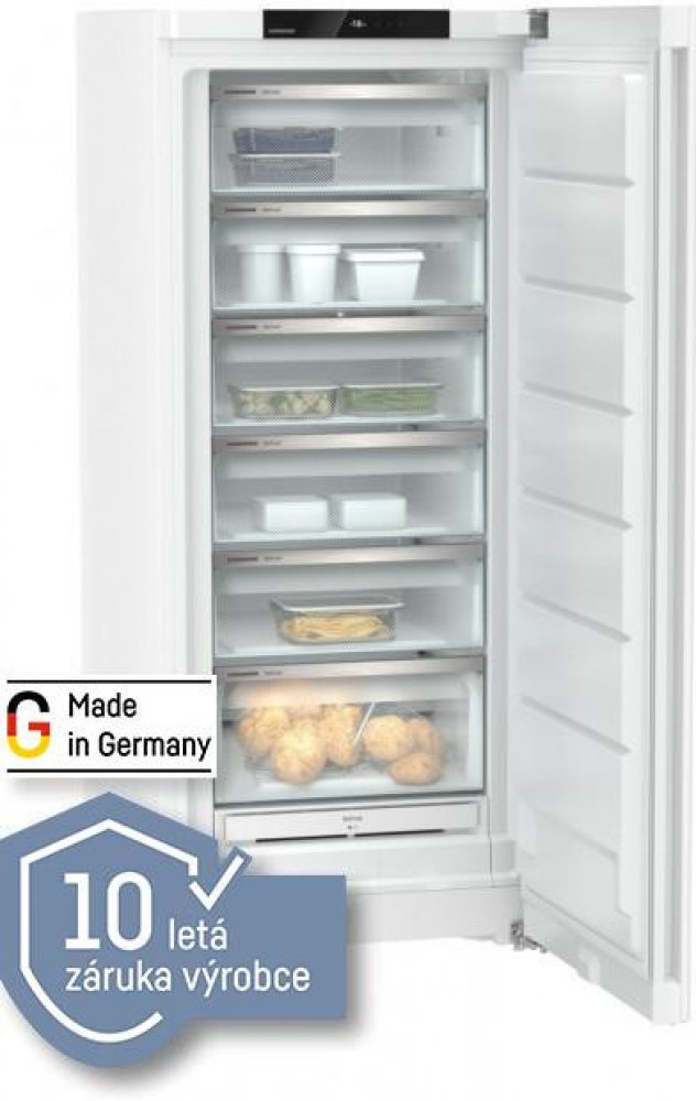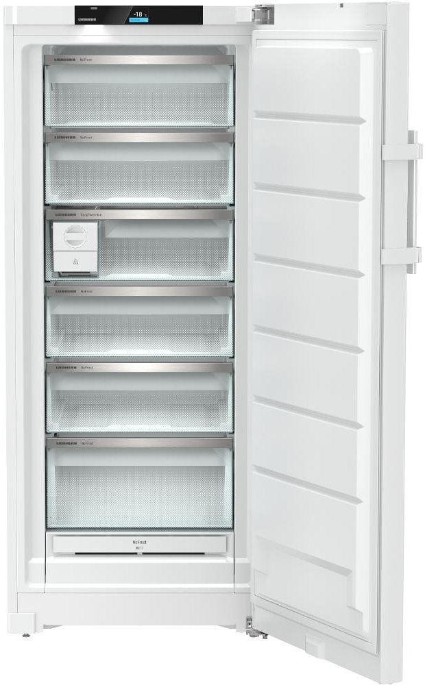 Volně stojící mraznička s NoFrost, objem 311 l , BluPerformance, TouchDisplay, FrostProtect - 15°C, SmartDevice ready, SuperFrost, 6 šuplíků, zapuštěné madlo, barva Bílá