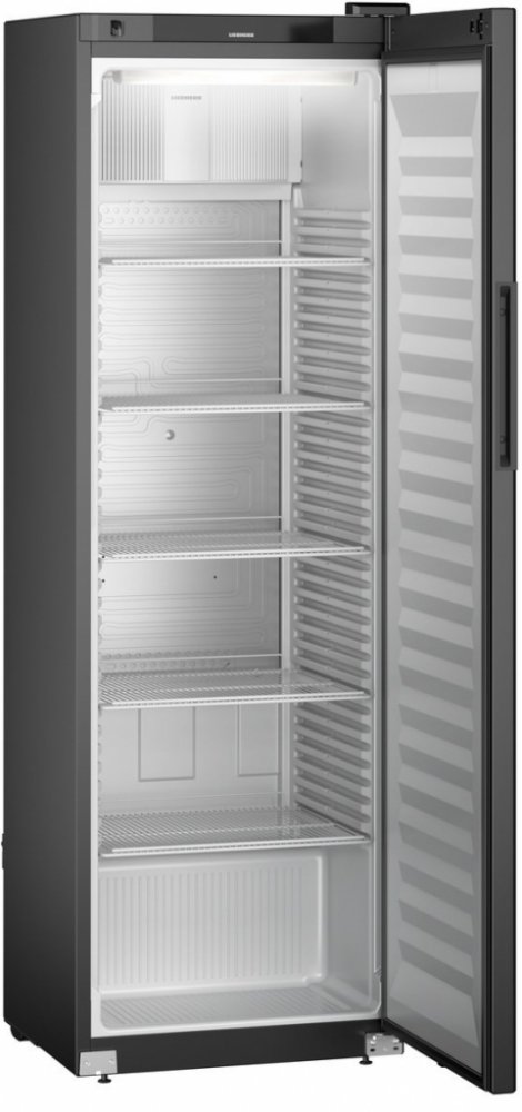 Chladnička 377 litrů; ventilační chladicí systém; uzamykatelné dveře SwingLine plné; elektronický zámek s dálkovým ovládáním; stmívatelné horní LED osvětlení; en.tř. C; rozsah chlazení: - 2 / + 15 °C; dotykové elektronické ovládání; digitální zobrazení teploty; vnější ocelový plášť s černým práškovým nástřikem; jednodílný tepelně tvarovaný polystyren (ekologický) vnitřní stříbrný plášť; 5 šedých vyztužených ocelových roštů s funkcí STOP a aretací pádu; výšku polic lze nastavit na 35 mm