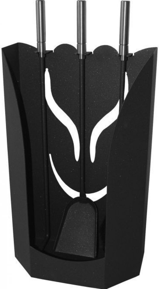 Souprava krbového nářadí Lienbacher 21.02.378.2, v kombinaci smetáček, lopatka a pohrabáč, s nerezovými madly. Držák nářadí lze umístit volně nastojato či jej lze upevnit na zeď.