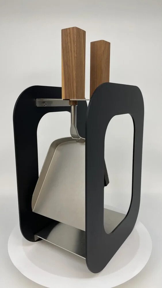 Sada krbového nářadí obsahuje lopatku a smetáček z nerezové oceli, rukojeti dřevo - ořech. Nářadí je usazeno v luxusním černém rámu/stojanu. Tento set je velmi stabilní, robustní a padne do ruky jako ulitý. Velmi oblíbené nářadí napříč naším sortimentem. Smetáček je vyroben z koňských žíní.