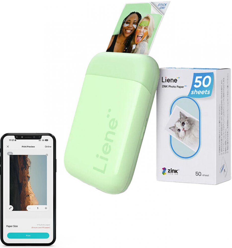 Užijte si svobodu tisku kdekoli a kdykoli. Liene Pearl mění fotky z iOS a Android zařízení na živé tisky formátu 2×3 palce během přibližně 43 sekund. Díky technologii ZINK tiskne bez inkoustu, takže odpadá nepořádek i nutnost výměny kazet. Výsledkem jsou odolné, voděodolné a nerozmazatelné snímky připravené ihned ke sdílení.Samolepicí zadní strana každé fotografie vám umožní snadno zdobit deníky, alba, dárky i domácí dekorace. Intuitivní aplikace Liene Photo nabízí úpravy, filtry, rámečky a okamžitý tisk – kreativita je tak jen na dosah ruky. Posuvný kryt usnadňuje doplňování papíru, vestavěná funkce čištění drží kvalitu tisku na špičkové úrovni a USB‑C zajišťuje pohodlné nabíjení na cestách.Proč si ji zamilujete:Bez inkoustu – žádné náplně, čistý a spolehlivý tisk.Kapesní rozměry – jen 183 g, ideální do kapsy či kabelky.Bluetooth 5.0 – rychlé spárování bez Wi‑Fi a kabelů.Samolepicí fotografie – snadná personalizace věcí a dárků.Startovací balení 50 listů – tisknete hned po vybalení.SpecifikaceVýrobceLieneModelPearl (KW001-65016)BarvaZelenáRozměry85 × 25 × 126 mmHmotnost183 gNabíjecí portUSB‑CKompatibilní systémyiOS 9.0 a novější, Android 7.0 a novější, macOSAplikaceLiene PhotoTechnologie tiskuZINK (Zero Ink)Velikost fotografického papíru2 × 3 palce (50 × 76 mm)Kapacita zásobníku papíruMax. 10 listů (včetně Smart Sheet)Jmenovitý vstup5 V ⎓ 1 AKapacita baterie500 mAhProvozní teplota15–32 °CProvozní vlhkost40–55 %Bezdrátové připojeníBluetooth 5.0Maximální vysílací výkon4,5 dBmProvozní frekvence2402–2480 MHz