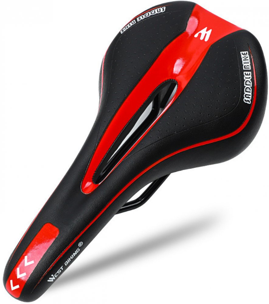 Pohodlné sportovní pánské cyklistické sedlo na kolo. Příjemná silikonová gelová výplň. Vychází z koncepce italských závodních cyklistických sedel. Ergonomicky tvarované sedlo s odvětrávací dírou uprostřed. Ocelové vidlice sedla dobře tlumí otřesy a jsou opatřeny měřítkem. Protiskluzový povrch PU povrch. Lehká váha 345g, rozměry 28x14,5cm. Celková výška sedla je přibližně 6,6 cm.