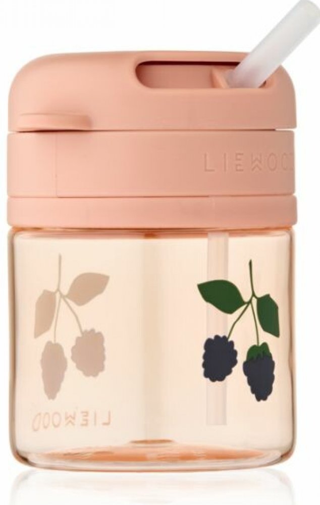 Liewood dětská lahev s brčkem Pavia Berry růžová plast 280 ml
