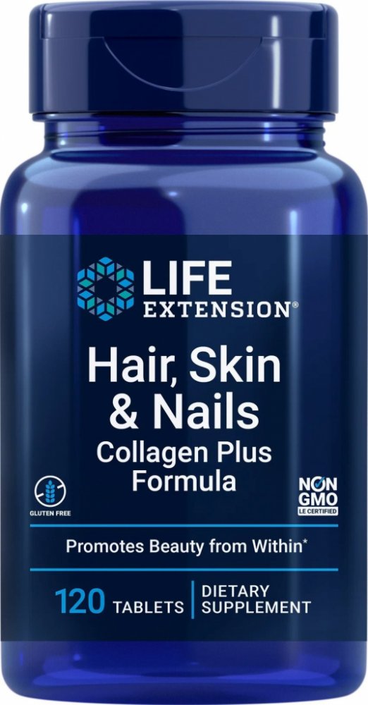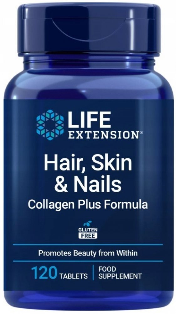 Omlazující kolagen a živiny podporující krásu zevnitř. Hair, Skin & Nails Collagen Plus Formula je skutečně jedinečný doplněk výživy. Obsahuje řadu živin, které pomáhají redukovat výskyt jemných linek a vrásek, a také poskytuje proteiny a další sloučeniny odpovědné za omlazení zdravých vlasů a pokožky. Vlastnosti Hair, Skin & Nails Collagen Plus Formula je skutečně jedinečný doplněk výživy. Obsahuje řadu živin, které pomáhají redukovat výskyt jemných linek a vrásek, a také poskytuje proteiny a další sloučeniny odpovědné za omlazení zdravých vlasů a pokožky. Podpora vašich vlasů, pokožky a nehtů živinami je nezbytná pro udržení zdravého a mladistvého vzhledu. Mnoho přírodních složek ve vaší stravě může prospět zdraví a vzhledu vaší pokožky, vlasů a nehtů, které jsou klíčem k mladistvému a zdravému pocitu a vzhledu. Klíčové složky Tato úžasná receptura, která obsahuje keratin, zinek, vitamín B3 (niacin), vitamín B5 (kyselina pantotenová), vitamín B6, měď, biotin, kolagenové peptidy a další, obsahuje nejmodernější ingredience, které všechny mohou přispět ke zdravým vlasům, kůže a nehty jedinečným způsobem. VERISOL® Bioactive Collagen Peptides® - Podporuje extracelulární matrix vaší pokožky. Stimuluje tvorbu kolagenu a elastinu, což podporuje vláčnost a pružnost pokožky. Cynatine® HNS Plus - Poskytuje solubilizovaný keratin, zinek, vitamíny B3 (niacin), vitamín B5 (kyselina pantotenová), vitamín B6, měď a biotin. Všechny tyto živiny podporují tvorbu keratinu, který je nezbytný pro silné vlasy, pokožku a nehty. Biotin - Je přírodní sloučenina nezbytná pro udržení zdravé pokožky, vlasů a nehtů, zejména pro lidi, kteří mají této sloučeniny nedostatek. Křemík - Je minerál, který je životně důležitý pro udržení zdravého kolagenu, sloučeniny, která je klíčová pro tvorbu silných a mladistvých vlasů, pokožky a nehtů. Doporučené dávkování Užívejte čtyři (4) tablety denně s jídlem nebo bez jídla nebo podle doporučení lékaře.