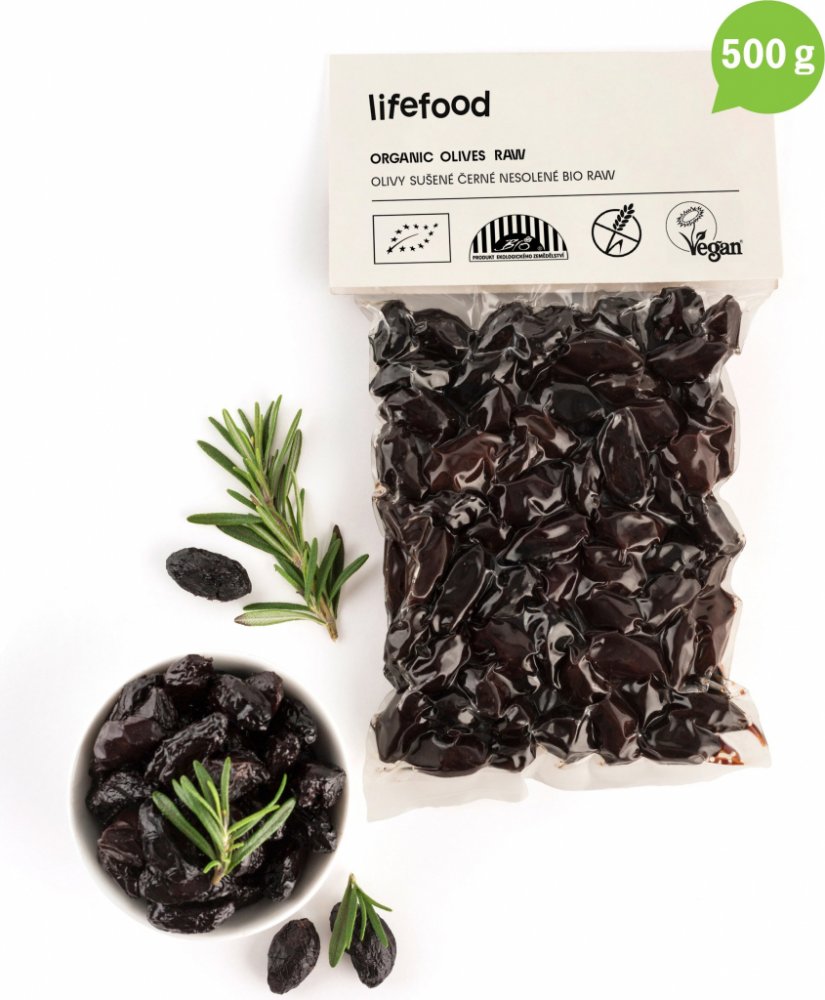 Lifefood Olivy černé sušené bez pecek Raw Bio 500 g