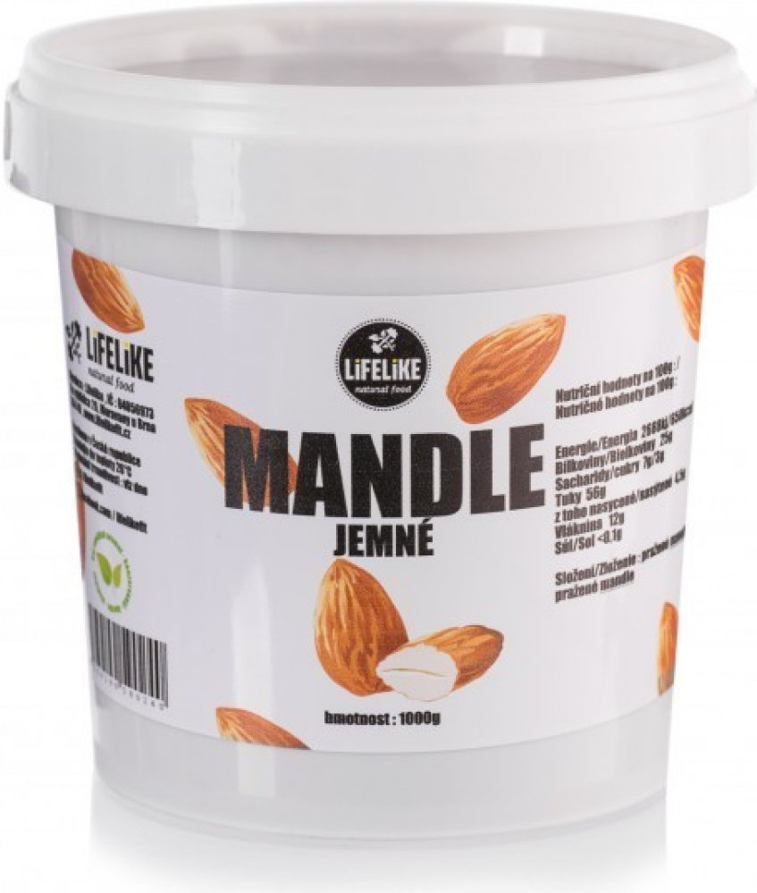 LifeLike Mandlové máslo 100% Mandlové máslo má jemnou nasládlou chuť a je zdravým přírodním zdrojem bílkovin, sacharidů a tuků. Mandlové máslo mě skvělou chuť a je zdravým přírodním zdrojem bílkovin, sacharidů a tuků. Mandlové máslo je ideální pro aktivní lidi, protože je dobrým zdrojem bílkovin a je velmi bohaté na kalorie, což umožňuje nahradit jakoukoliv vysoce kalorickou stravu. Mandle použité v mandlovém másle se praží v jejich přírodní hnědé slupce před mletím, což zaručuje zachování všech živin ukrytých pod slupkou. Absolutně nic jiného se do mandlového másla nepřidává, takže zůstává přirozenou a zdravou volbou. Mandle nejen že obsahují skvělý profil mononasýtených mastných kyselin, které jsou pro tělo ideálním zdrojem energie, ale i docela dobrý obsah proteinů a zejména množství vitamínu E a vlákniny. Vyzkoušejte jiný standard mlsání a otestuje si, že se budete cítit úplně jinak po mandlích s hořkou čokoládou v porovnání s klasickými sladkostmi. Krém vyrábíme čerstvý přímo v České republice na základě vlastní receptury tak, aby jste se mohli spolehnout na bezchybný produkt. Nic neskrýváme a proto naše másla děláme z nejvyšší třídy a kvality ořechů. 100% bez palmového oleje, emulgátorů a konzervantů 100% přírodní složení bez přidaného rafinovaného cukru Složení mandlového krému: Pražené mandle neloupané. Země původu : Kalifornie, USA Nutriční hodnoty na 100 g: Energetická hodnota 2688 kJ / 650 kcal Bílkoviny 25 g Sacharidy 7 g Tuky 56 g z toho nasycené 4,5 g Vláknina 12 g Usazenina oleje na povrchu je přirozený jev , stačí promíchat. Výrobek může obsahovat stopové množství arašídů a ostatních skořápkových plodů. Upozornění Přípravek není určen dětem do 5 let a těhotným a kojícím ženám. Nežádoucí účinky:Výjimečně u citlivých osob se může objevit kožní vyrážka nebo podráždění střev. Jak přípravek uchovávat: Na stinném a suchém místě při teplotě do 25°C a mimo dosah dětí. Upozornění: Tento produkt byl uvedený na trh jako doplněk stravy. Nemá schválené léčivé účinky a nejedná se o lék. Není určeno jako náhrada pestré stravy. Nepřekračujte doporučené dávkování. Ukládejte mimo dosah dětí. Minimální trvanlivost vyznačena na obalu.