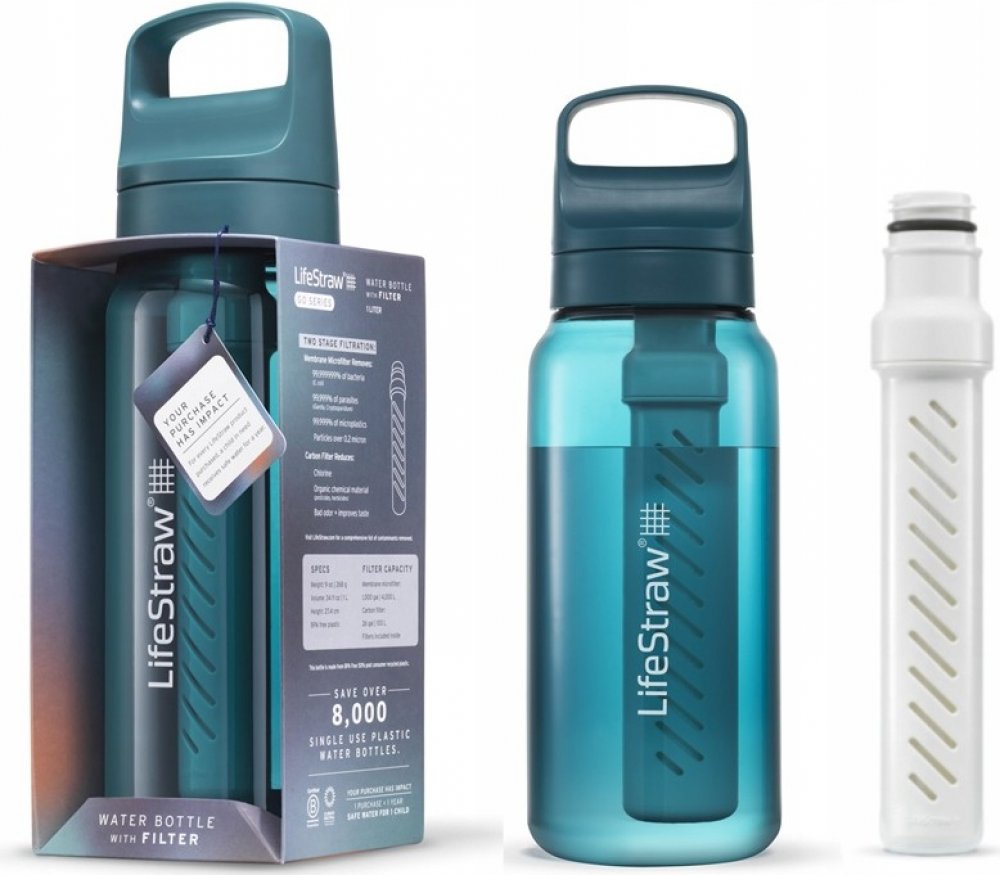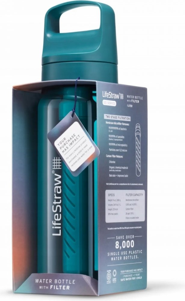 Vlastnosti:- Model, který se dokonale osvědčí při outdoorových aktivitách;- Využijete ji jak při trekingu a kempování, tak při bushcraftových výpravách;- Membránový mikrofiltr, který chrání před E.coli, salmonelou, parazity jako Giardia a Cryptosporidium, mikroplasty, pískem, nečistotami a zákalem;- Filtr snižuje obsah chlóru a nepříjemných pachů a zlepšuje chuť vody;- Membránový filtr umožňuje přefiltrovat přibližně 4 000 litrů vody;- Membránový filtr splňuje normu NSF 42 pro redukci chlóru a normy US EPA a NSF P231 pro pitnou vodu pro odstranění bakterií a parazitů;- Výrobky Lifestraw se mohou pochlubit certifikacemi B Corp a Climate Neutral;- Konstrukce neobsahuje BPA;- Láhev je vyrobena z tritanui;- Objem 1 litr;- Láhev lze po vyjmutí filtru mýt v myčce nádobí.