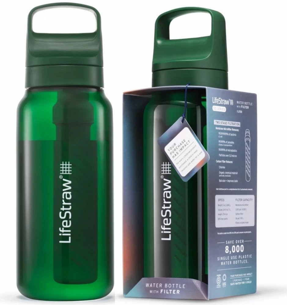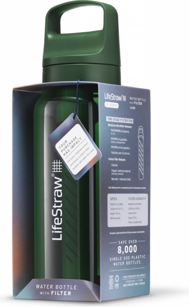 Vlastnosti:- Model, který se dokonale osvědčí při outdoorových aktivitách;- Využijete ji jak při trekingu a kempování, tak při bushcraftových výpravách;- Membránový mikrofiltr, který chrání před E.coli, salmonelou, parazity jako Giardia a Cryptosporidium, mikroplasty, pískem, nečistotami a zákalem;- Filtr snižuje obsah chlóru a nepříjemných pachů a zlepšuje chuť vody;- Membránový filtr umožňuje přefiltrovat přibližně 4 000 litrů vody;- Membránový filtr splňuje normu NSF 42 pro redukci chlóru a normy US EPA a NSF P231 pro pitnou vodu pro odstranění bakterií a parazitů;- Výrobky Lifestraw se mohou pochlubit certifikacemi B Corp a Climate Neutral;- Konstrukce neobsahuje BPA;- Láhev je vyrobena z tritanui;- Objem 1 litr;- Láhev lze po vyjmutí filtru mýt v myčce nádobí.