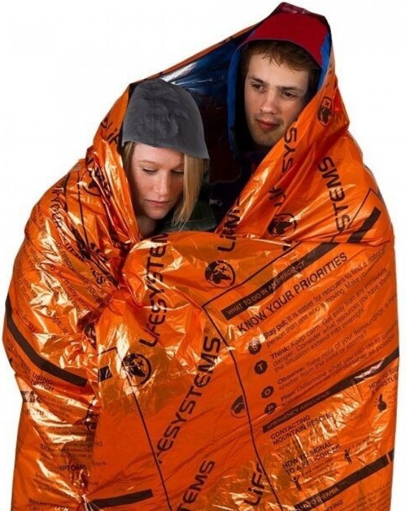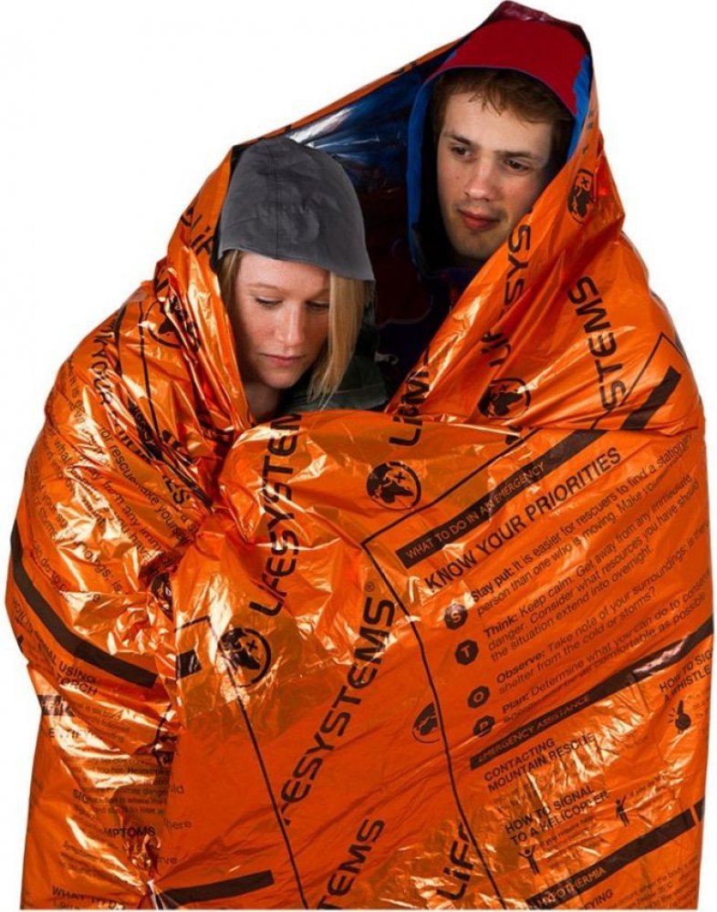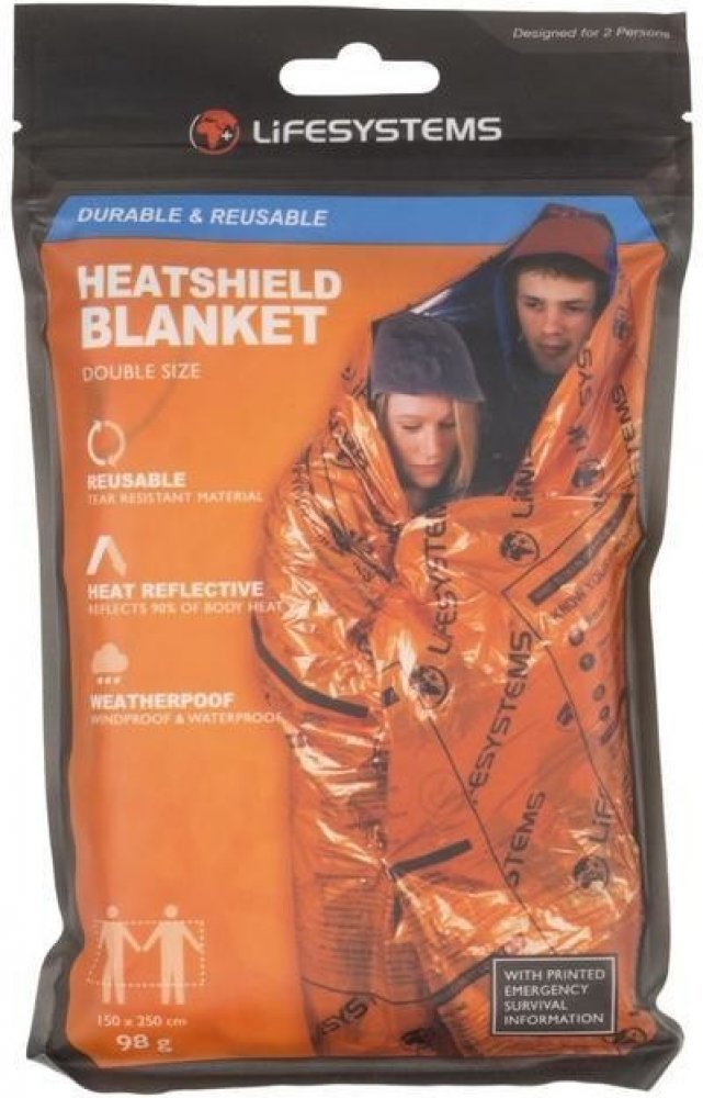 Heatshield Blanket Double je nouzová, odolná a skladná fólie pro 2 osoby, která pomůže udržet tělesnou teplotu v případě úrazu nebo při rychlém zhoršení počasí. Je vyrobena z pokoveného odolného polyethylenu, který odráží zpátky 90% vyzařovaného tělesného tepla. Fólie je nepromokavá, větruodolná a odráží radarové vlny. Díky své pevnosti je možné ji použít opakovaně.