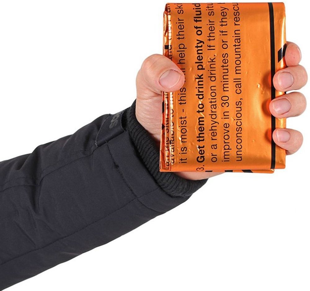 Heatshield Blanket Single je nouzová, odolná a skladná fólie pro 1 osobu, která pomůže udržet tělesnou teplotu v případě úrazu nebo při rychlém zhoršení počasí. Je vyrobena z pokoveného odolného polyethylenu, který odráží zpátky 90% vyzařovaného tělesného tepla. Fólie je nepromokavá, větruodolná a odráží radarové vlny. Díky své pevnosti je možné ji použít opakovaně.