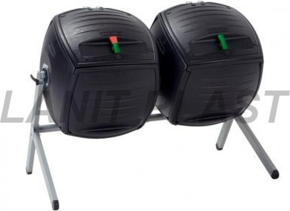 Dvojitý bubnový rotační komposter pro snadné kompostování po celé vaší zahradě. Komposter má podobu dvou černých válců s dvojitou stěnou s možností rotace na masivní nosné pozinkované konstrukci. Komposter lze zajistit v určité pozici zarážkou. Dodáváme jako stavebnici - snadná montáž.