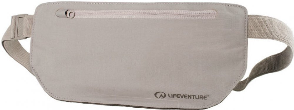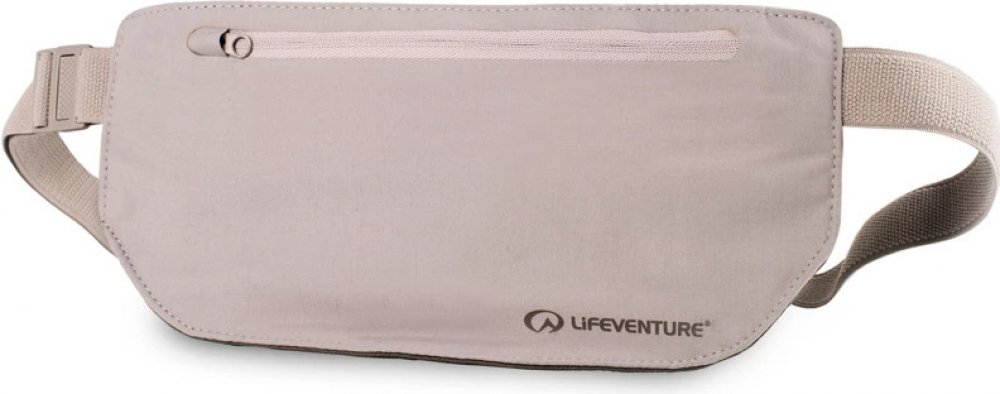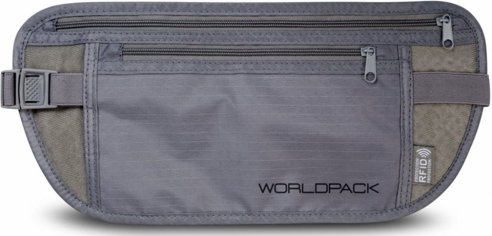 Lehká cestovní peněženka kolem pasu s RFiD ochranou, elastickým popruhem a velkou kapsou na zip.