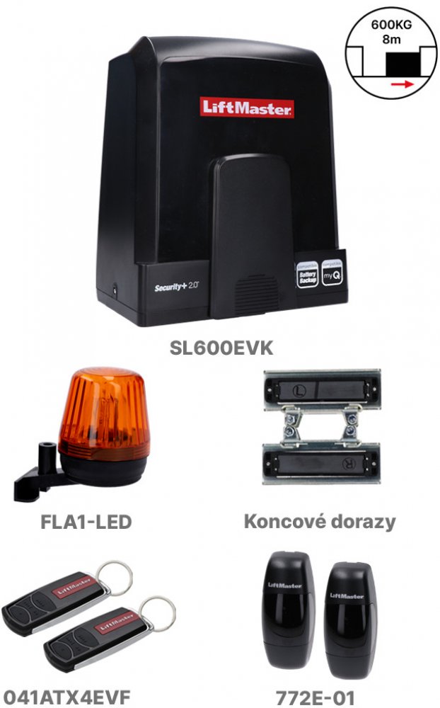 LiftMaster SL600EVK-03 je kompletní sada určená pro rezidenční posuvné brány s maximální hmotností křídla 600kg a maximální délkou křídla 8m. Pohon je ideální pro spolehlivý a bezpečný provoz brány, přičemž podporuje moderní technologii myQ, která umožňuje pohodlné ovládání brány na dálku prostřednictvím smartphonu, tabletu nebo počítače. Díky robustnímu designu a spolehlivé konstrukci je LiftMaster SL600EVK-03 perfektním řešením pro každodenní použití.