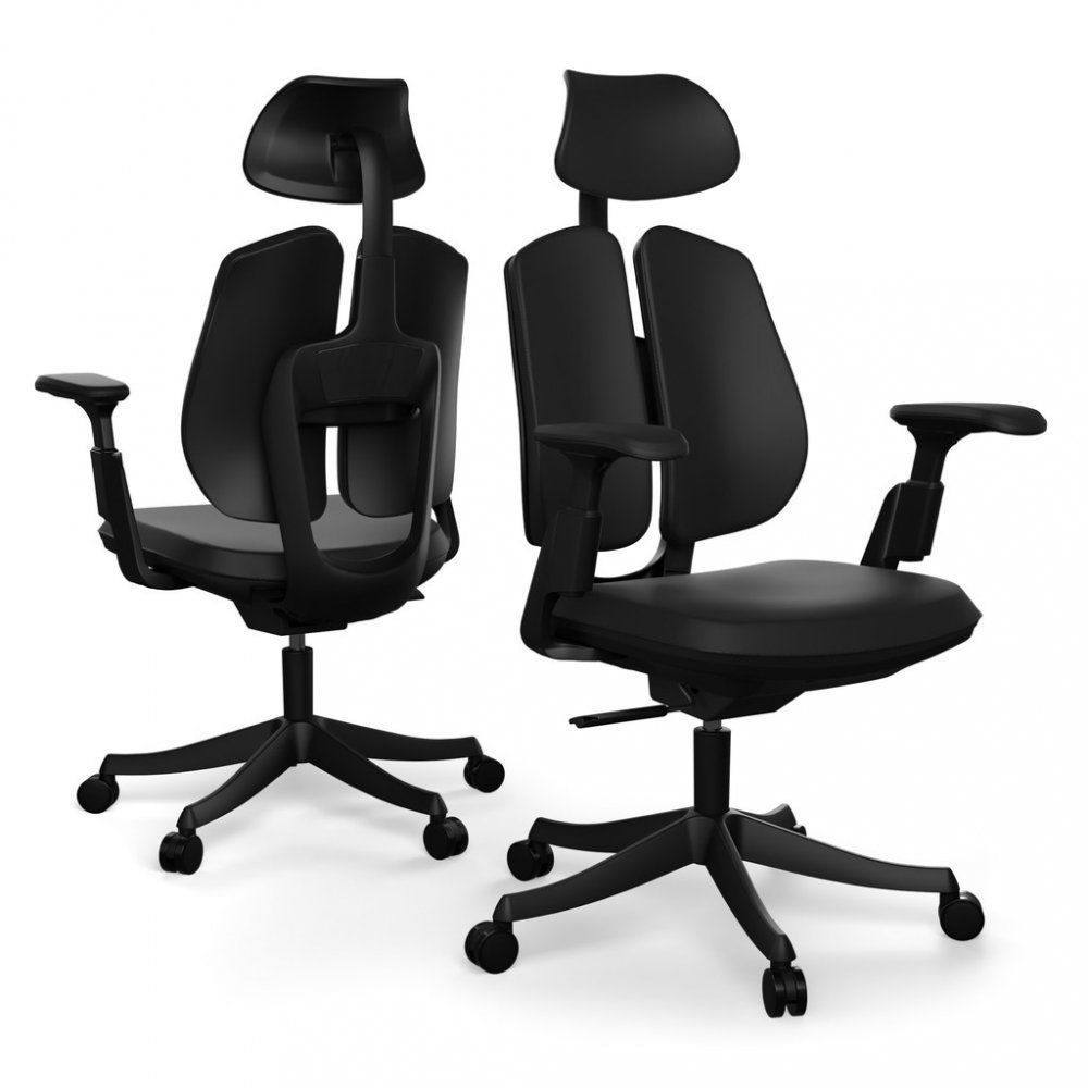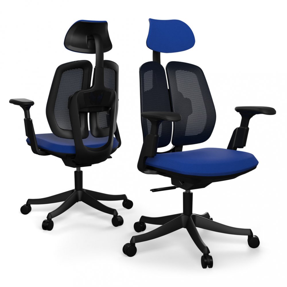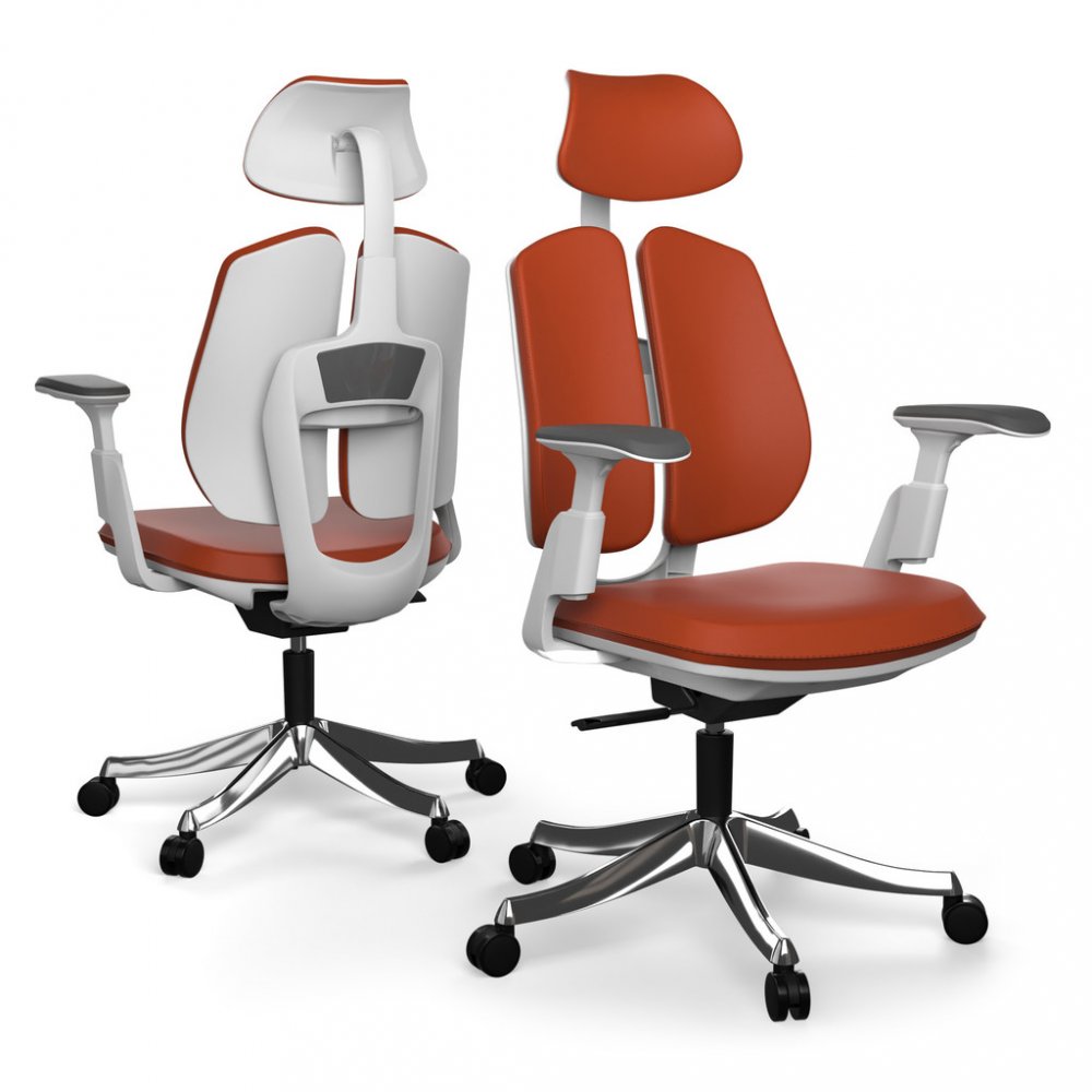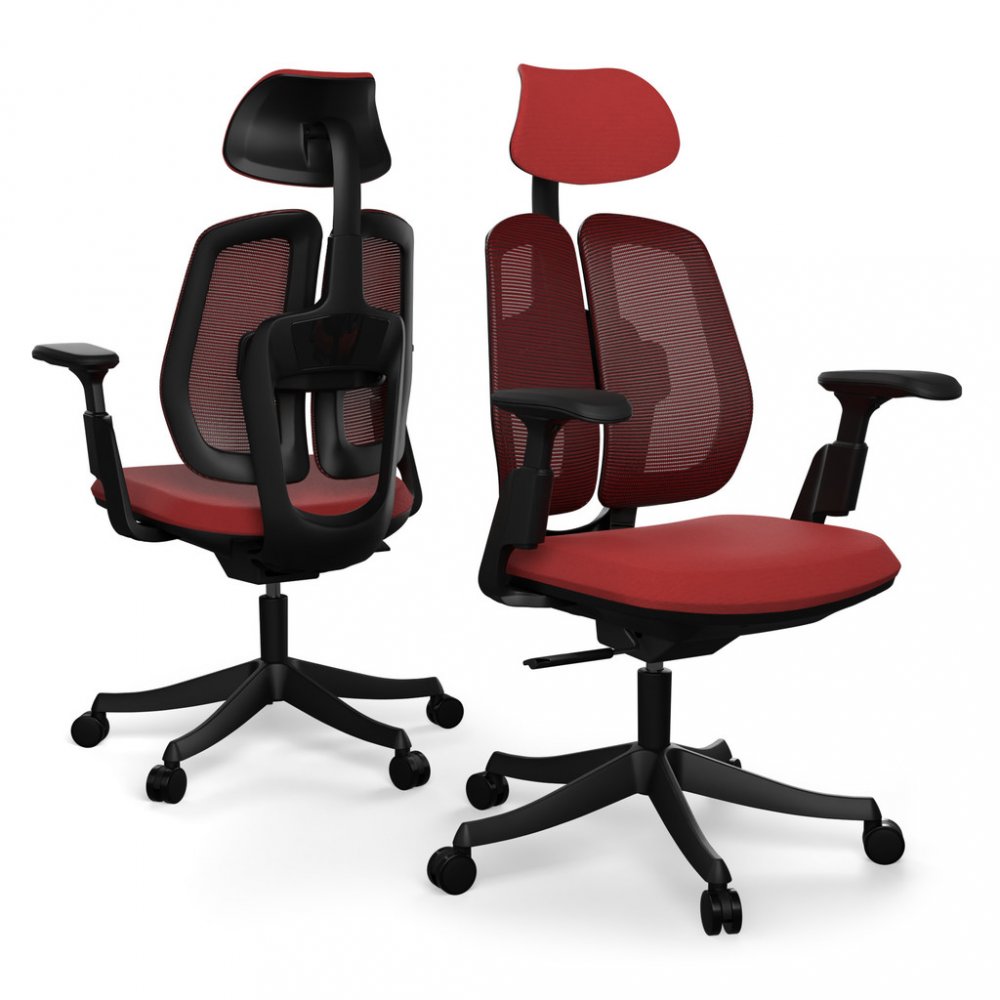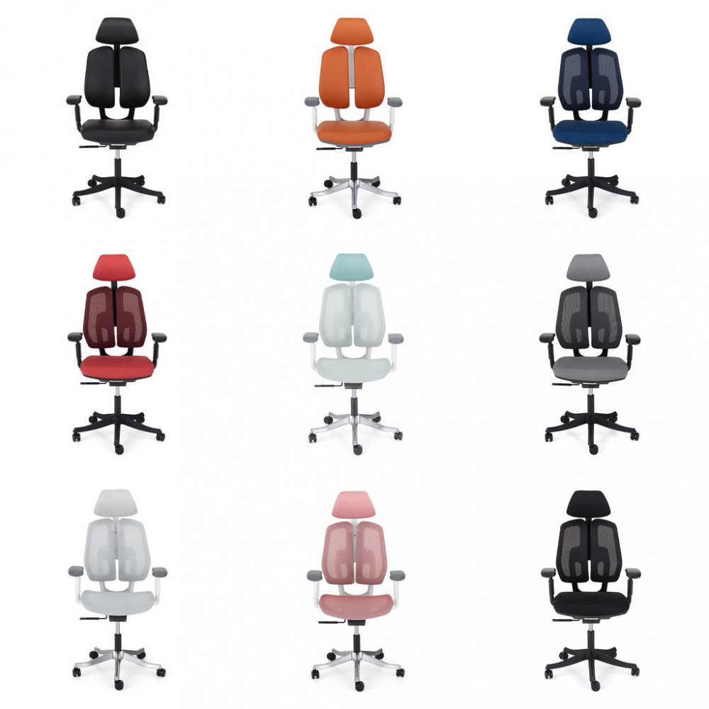 Inovativní dvoudílná zádová opěrka je má nezávislé uchycení obou částí . Každá část opěrky se pohybuje do všech stran a snadno se tak přizpůsobí vaší poloze při sezení. Vaše záda budou tak vždy mít ideální podporu a vám se tak bude lépe pracovat.
