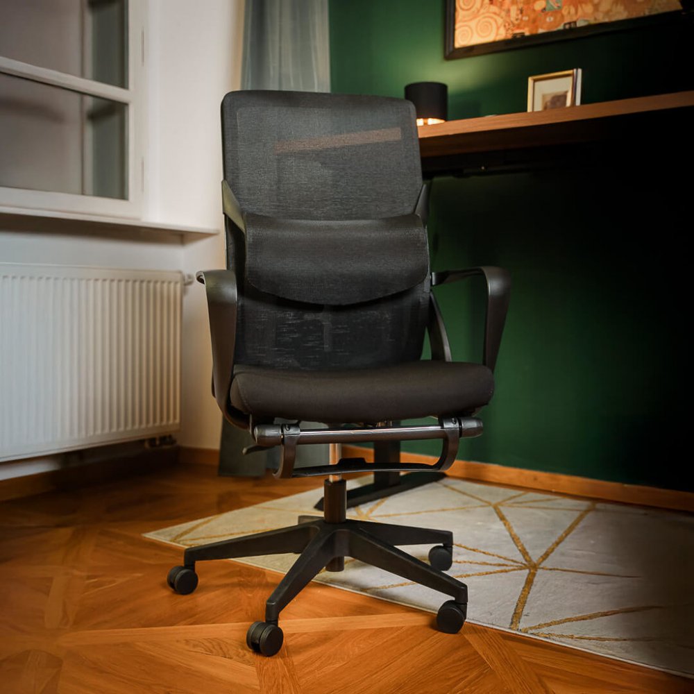 Zadní část opěráku židle je vybavena profilovanými prvky, které poskytují cílenou oporu v klíčových oblastech zad. Díky tomu dochází k rovnoměrnému rozložení tlaku a optimální podpoře bederní i horní části zad , což napomáhá správnému držení těla a snižuje únavu při celodenním sezení.