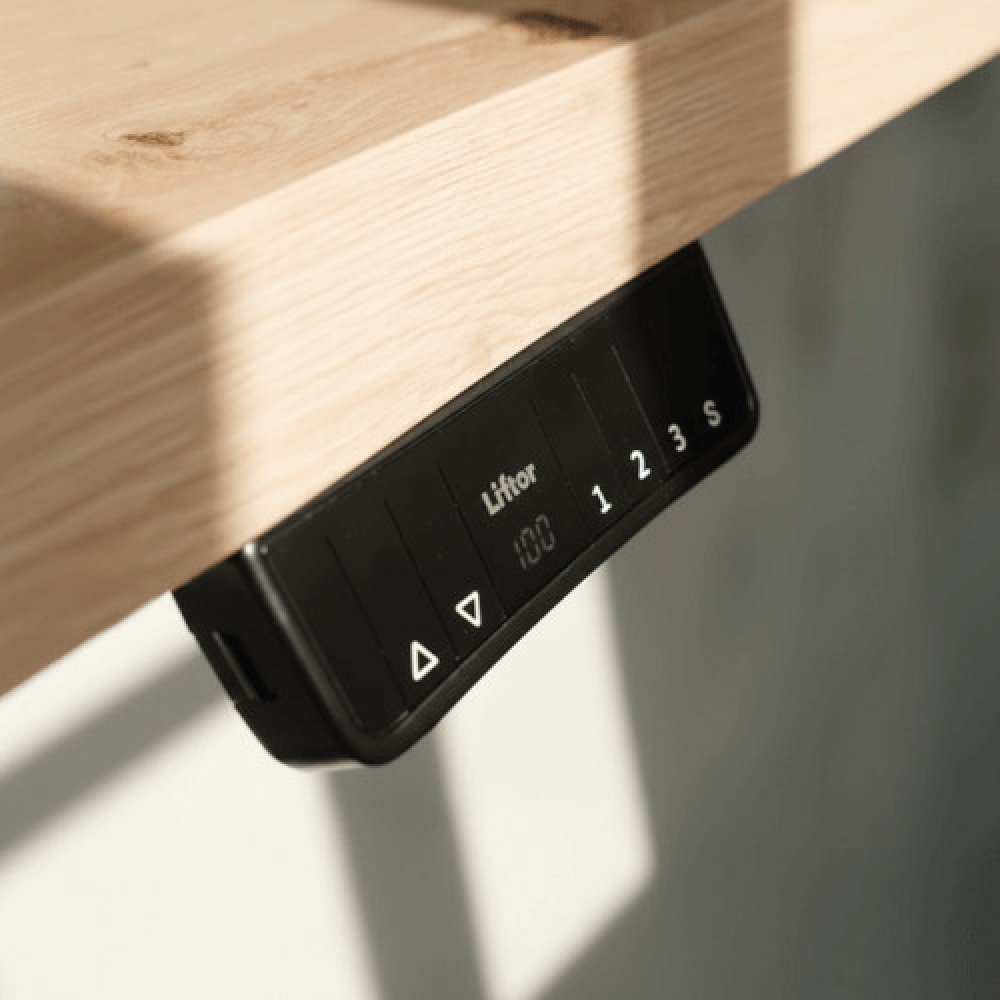 Liftor Rise má stabilní 2segmentové nohy, LED ovladač s USB a pamětí až pro 3 polohy, zvedá se díky jednomu motoru rychlostí 20 mm/s a můžete jej zatížit až 100 kg.