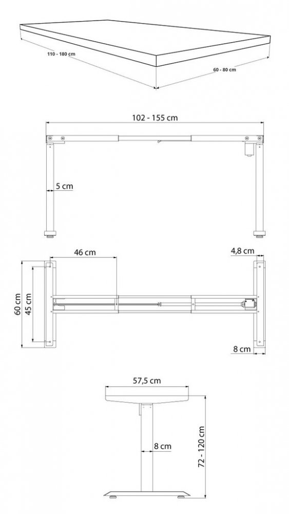 ✓ Pevný a stabilní stůl i v nejvyšší poloze.