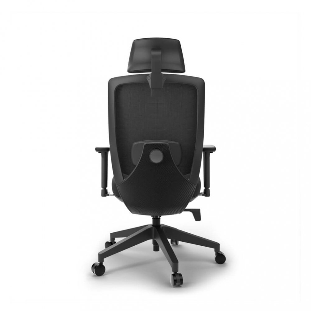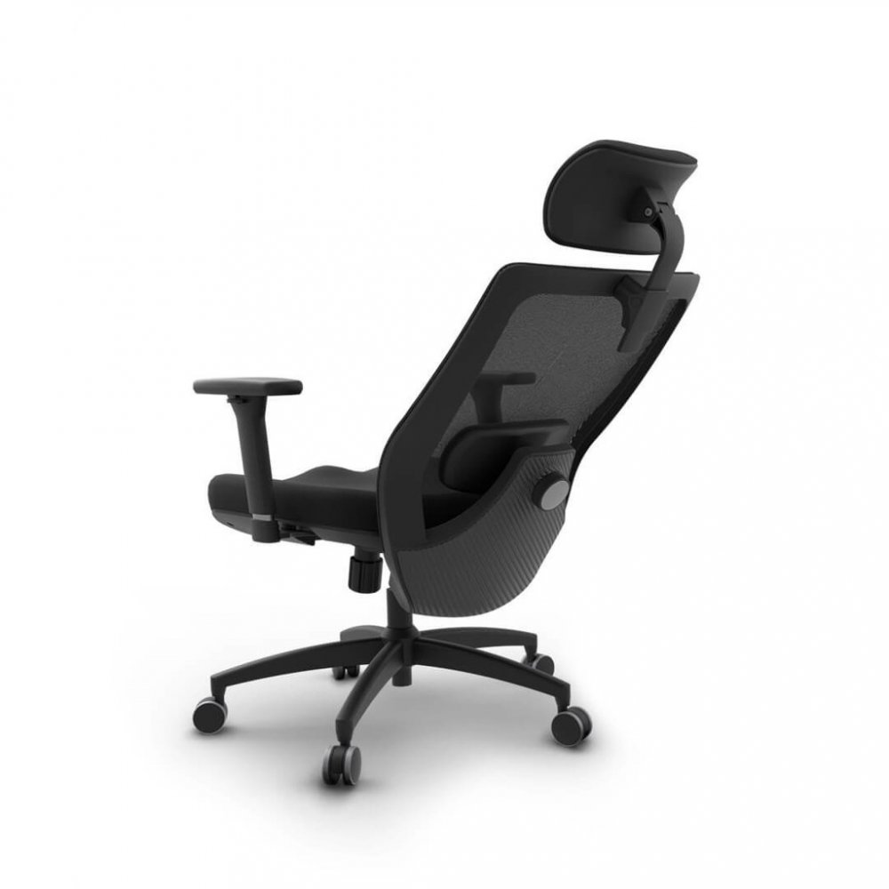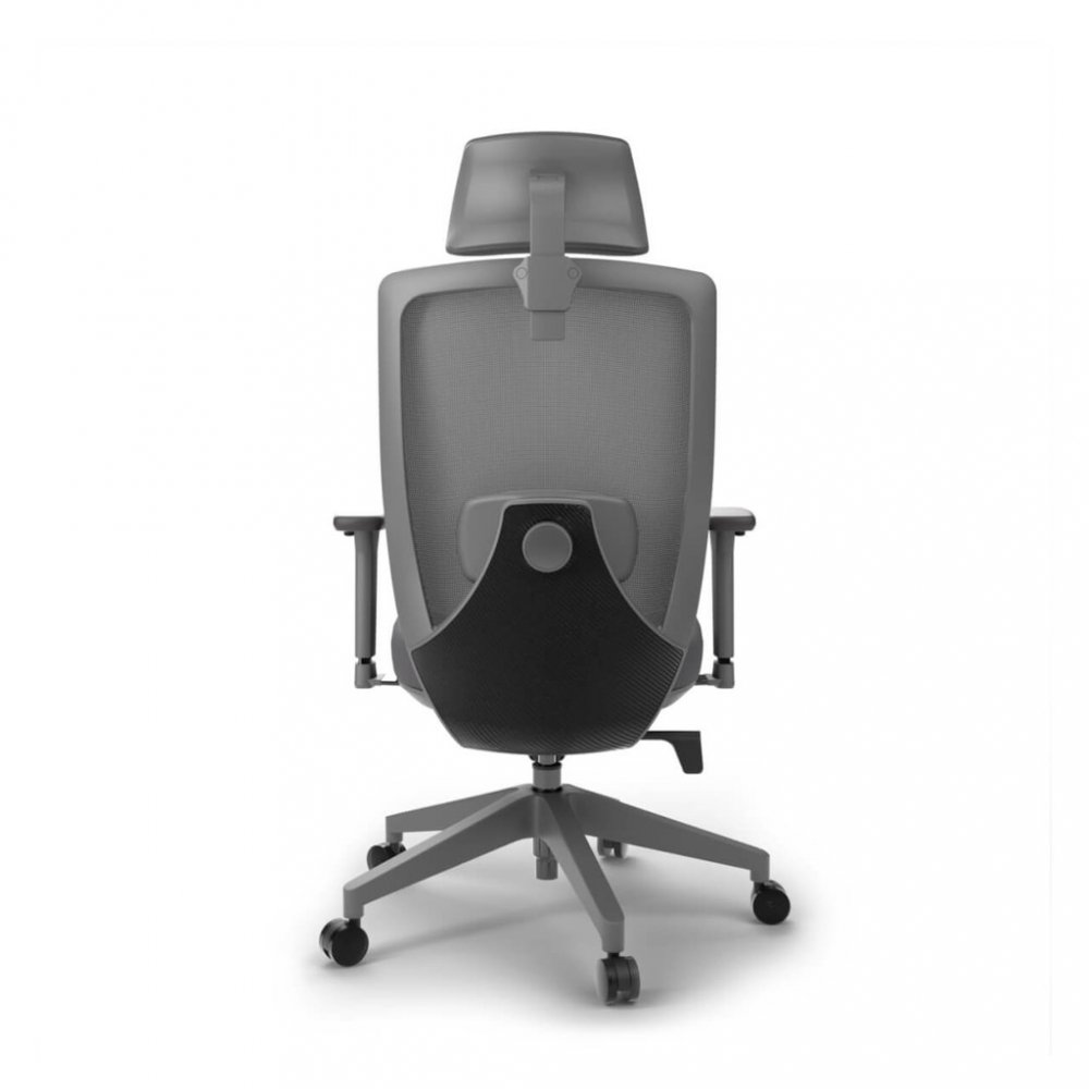 Nastavitelná bederní opěrka se postará o cílenou podporu spodní části zad. Dekorativní kryt ve tvaru štítu s karbonovým designem nejen podtrhuje moderní vzhled židle, ale také zpevňuje zádovou opěrku.