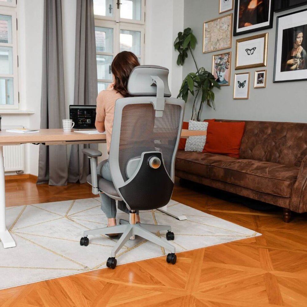 Ergonomická bederní opěrka umožňuje úpravu hloubky, což pomáhá ulevit bederní oblasti a podporuje zdravé držení těla.