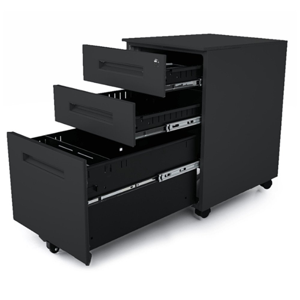 Zásuvkový kontejner ke kancelářskému stolu Bytelný kovový kontejner, určen pro uchování ceností či různých dokumentů, který krásně zapadne pod váš kancelářský stůl. Disponuje 3 zásuvkami a horním uzamykatelným. Vlastnosti Je vybaven pěti posuvnými kolečky, které umožňují snadný přesun tam, kam si zrovna umanete. Díky uzamykatelným šuplíkům zůstanou vaše cenné dokumenty v bezpečí. Materiál Pojizdný kontejner, je vyroben z lakované pevné oceli. K dostání jsou ve třech univerzálních barvách: černé, bílé a šedé. Vyberte si barvu, která bude ladit k vašemu kancelářskému vybavení.