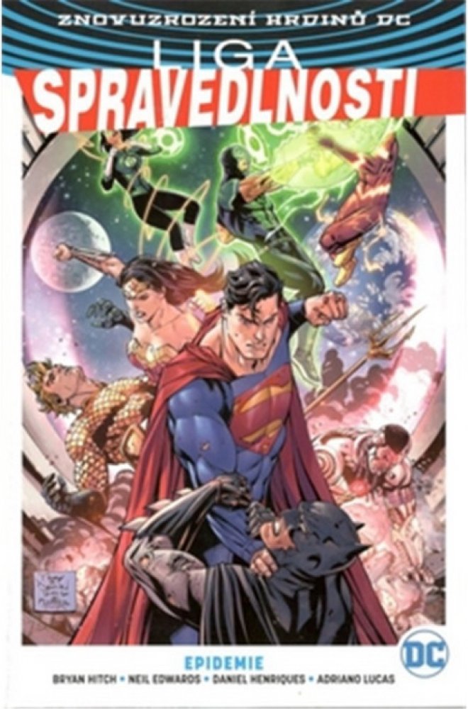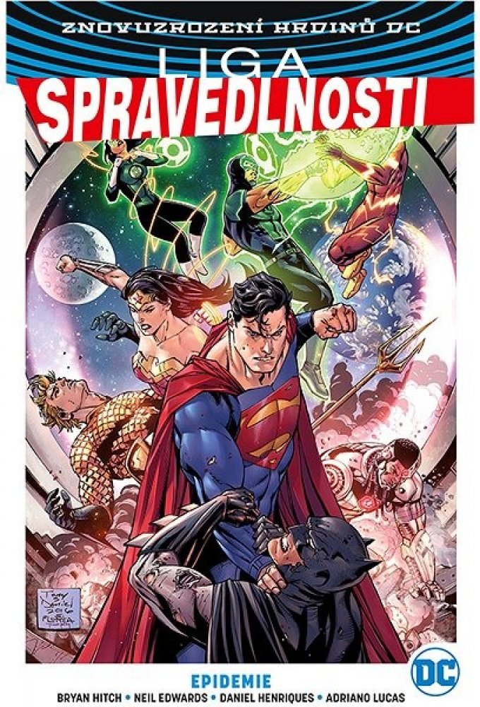 Liga spravedlnosti 2: Epidemie V4 - Bryan Hitch, Neil Edwards Liga spravedlnosti rozšířila své řady o nového, zkušenějšího Supermana a dvojici mladých zapálených Green Lanternů. Zvýšila tím svůj dosah a zvětšila moc. Soudržnost týmu nikdy nebyla lepší. A nyní to jediný člověk roztrhá všechno na kusy. Truchlivý manžel plný zášti, který pracuje v skromné předměstské garáži, obrací pomocí svých působivých hackerských schopností proti Lize spravedlnosti její nejmocnější zbraně. Pouhými několika ťuknutími do klávesnice se dokáže zmocnit Cyborga, infikovat Green Lanternův prsten moci a vypustit z řetězu armádu padouchů, kteří mají hrdiny zničit. Dokáže Batman společně se zbytkem Ligy najít hackera a zastavit elektronický útok? Nebo si kybernetická válka vyžádá oběti z masa a kostí?