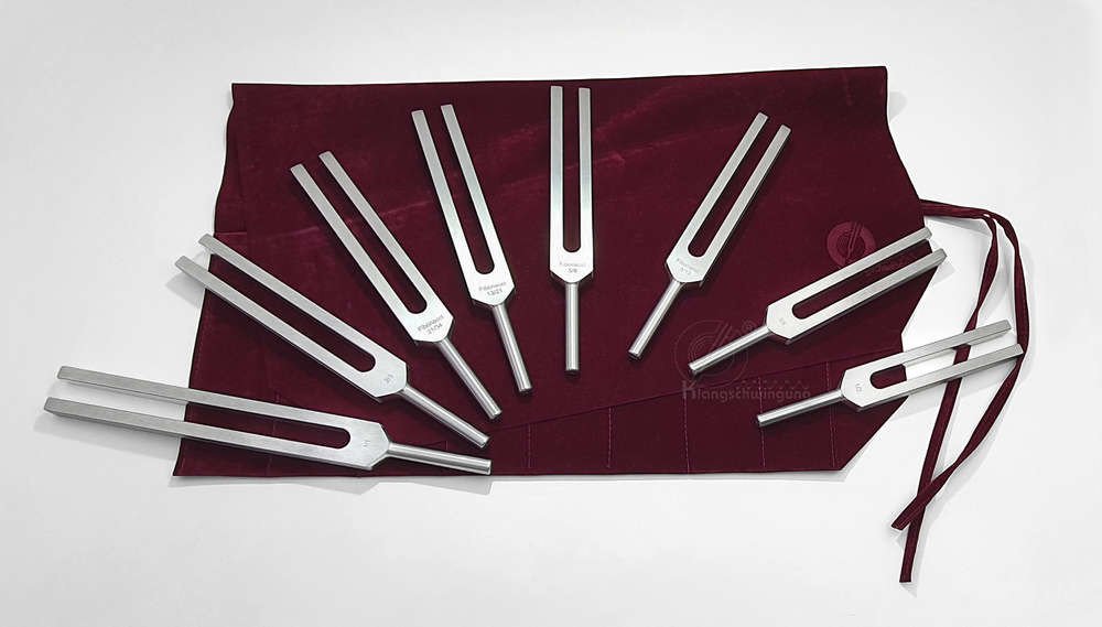 - Začněte poslechem dvojic u uší, poté přidejte více ladiček pro sonické lázně – proud alikvotních tónů působí na tělo i mysl jako zvuková meditace.