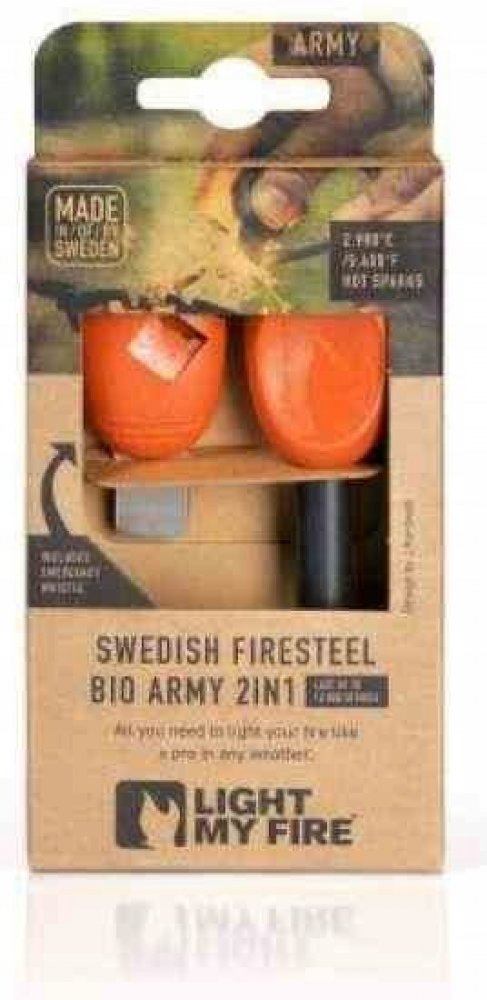 Křesadlo Light my fire je ideálním pomocníkem pro rozdělání ohně za každého počasí a v jakékoli nadmořské výšce. Ať už jste myslivec, rybář nebo milovník kempování, nemělo by ve vaší výbavě chybět. Křesadlo se může chlubit dlouhou životností, vydrží až 12000 škrtnutí. Teplota jisker dosahuje až 2980 °C. Součástí křesadla je také hlasitá píšťalka do kritických situací. Křesadlo se nezalekne mokra ani deště a zůstane plně funkční. Materiálem křesadla Light my fire je hořčíková slitina a ocel. Nemusíte se nijak obávat, křesadlo je zcela spolehlivé. Své místo si najde také ve vaší domácnosti, kde poslouží k podpalování kamen, krbů a venkovních grilů. Zásadní vlastnosti křesadla Light My Fire FireSteel army rustyorange Křesadlo Light my fire je vhodným pomocníkem pro rozdělání ohně i v nepříznivých podmínkách Až 12000 zážehů Síla jiskry je 2980 °C Součástí křesadla je píšťalka Materiálem křesadla Light my fire je hořčíková slitina a ocel Oranžová barva