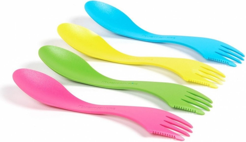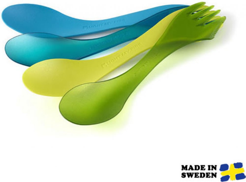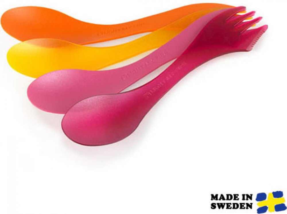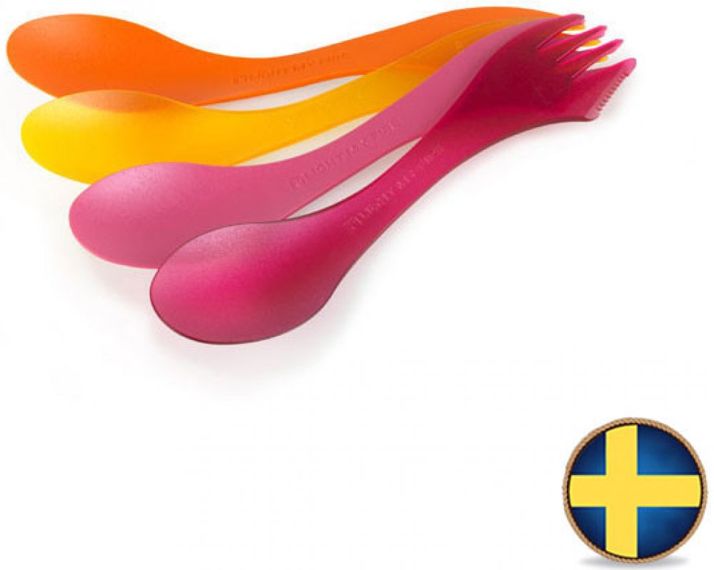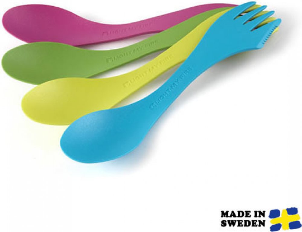 Spork: kombinace lžičky, vidličky a nože. Naše kombinace lžičky, vidličky a nože přináší trochu civilizace do divočiny a trochu divočiny do civilizace. Vytvořeno speciálně pro společnost Light My Fire skandinávským návrhářem Joachimem Nordwallem. Spork je úžasná pomůcka – vejde se do batohu, kapsy, do piknikového koše, kabelky nebo aktovky.