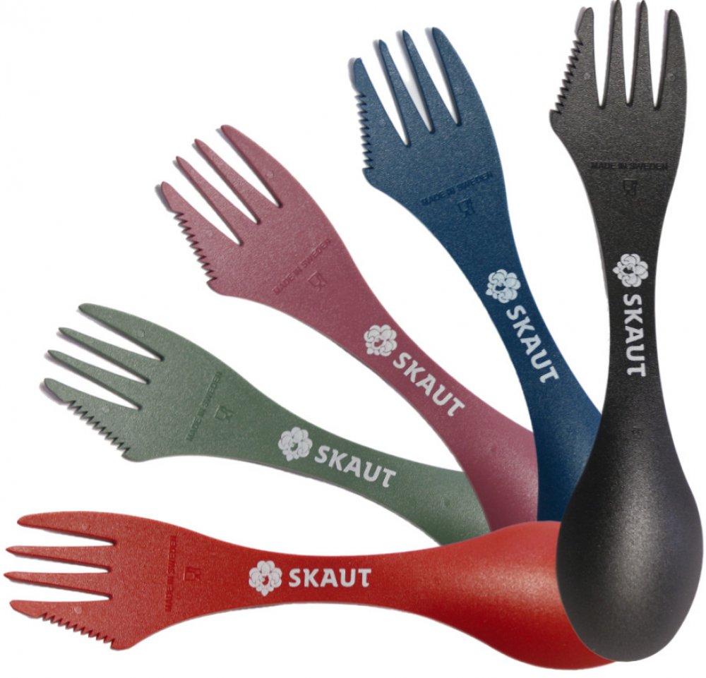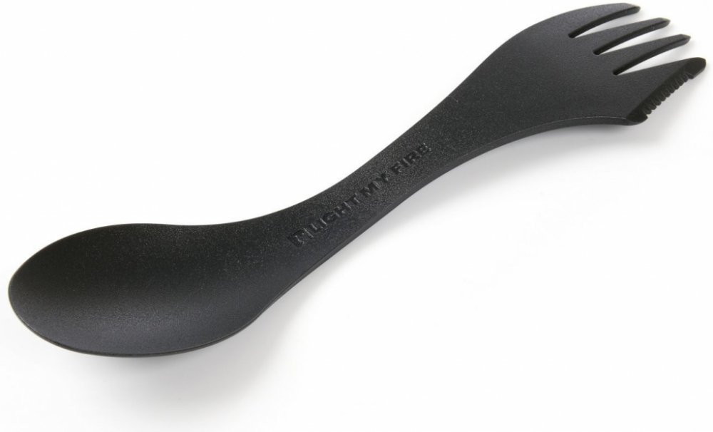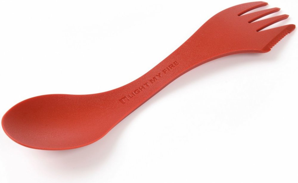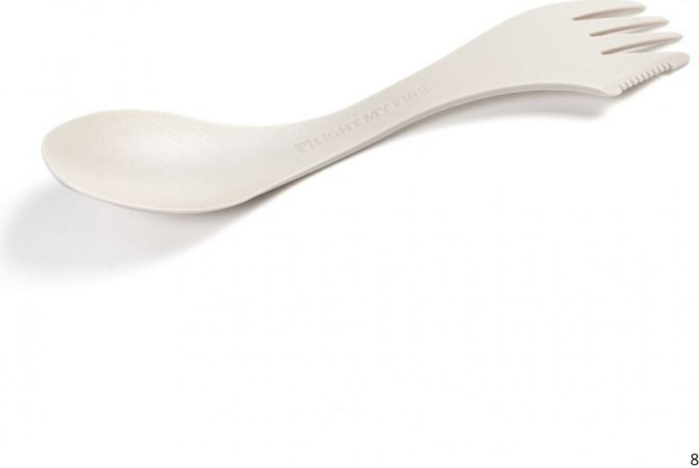 Spork: kombinace lžičky, vidličky a nože. Naše kombinace lžičky, vidličky a nože přináší trochu civilizace do divočiny a trochu divočiny do civilizace. Vytvořeno speciálně pro společnost Light My Fire skandinávským návrhářem Joachimem Nordwallem. Spork je úžasná pomůcka – vejde se do batohu, kapsy, do piknikového koše, kabelky nebo aktovky.