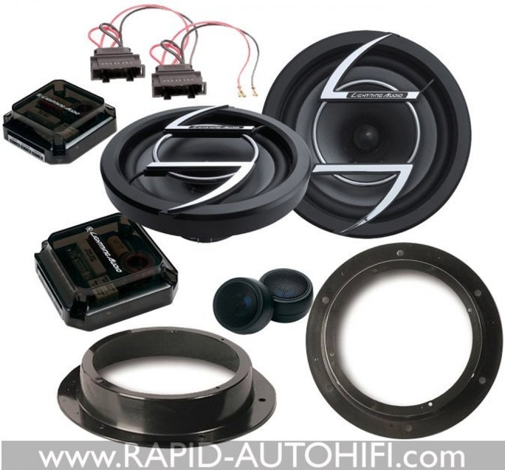 Obsahuje výkonné 2-pásmové komponentní reproduktory S4.65C řady Strike amerického výrobce Lightning Audio a vše potřebné pro korektní výměnu. Tedy plastové montážní redukce a kabelové redukce z originálního...