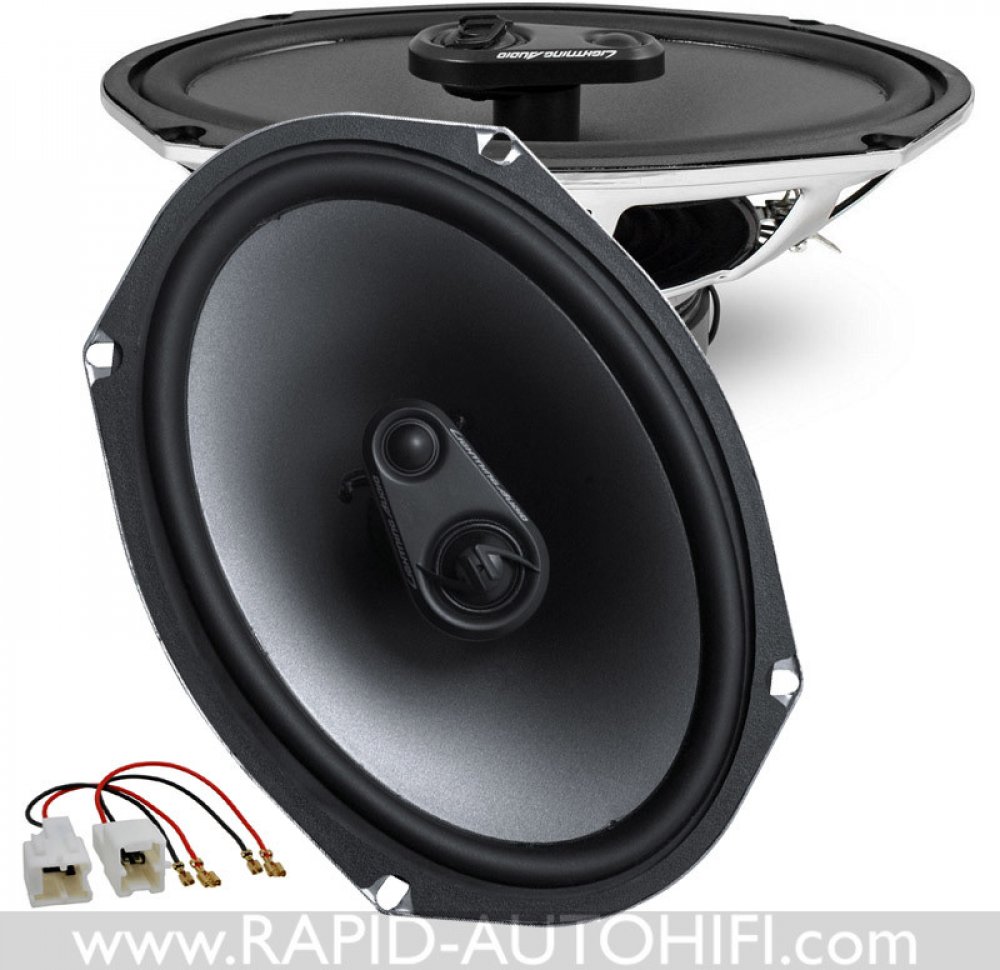 Obsahuje kvalitní 15 x 23 cm oválné 3-pásmové triaxiální reproduktory vyšší třídy Strike amerického výrobce Lightning Audio S4.69.3 a kabelové redukce pro připojení reproduktorů do originálního svazku Hyundai.