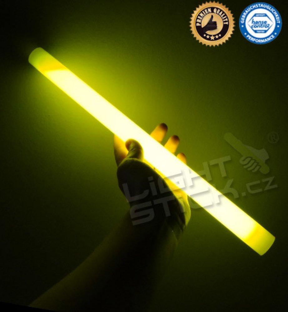 Svítící tyč MONSTER Lightstick 36cm je největší svítící tyčinkou (spíše tyčí) v naší nabídce. Jeho délka činí 36 cm a průměr je úctyhodných 2,5 cm. S tímto lightstickem budete zářit ze všech nejvíce! Doba svitu je minimálně 12 h. Je vhodný na koncerty, k žonglování i jako osvětlení do stanu nebo domu, v případě výpadku proudu. Svítící tyč funguje na principu chemiluminiscence (chemického světla), nepotřebuje ke svícení žádné baterie, je vodotěsná, nehořlavá, netoxická. Vhodná i jako nouzové osvětlení do auta,na chatu či do stanu. Vhodná jako navigační světlo.