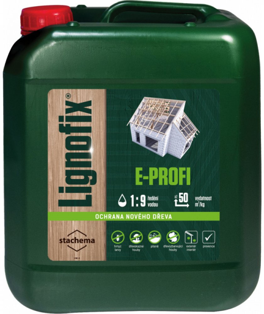 Lignofix E Profi bezbarvý - ochrana dřeva proti škůdcům (červotoč, tesařík), likvidace dřevokaznému hmyzu , fungicidní ochrana dřeva proti dřevokazným houbám, plísním. Fungicidní přípravekk preventivní povrchové ochraně dřeva v interiérech a exteriérech, ochraně zdiva a omítek proti jejich prorůstání dřevokaznými houbami (např.dřevomorkou).