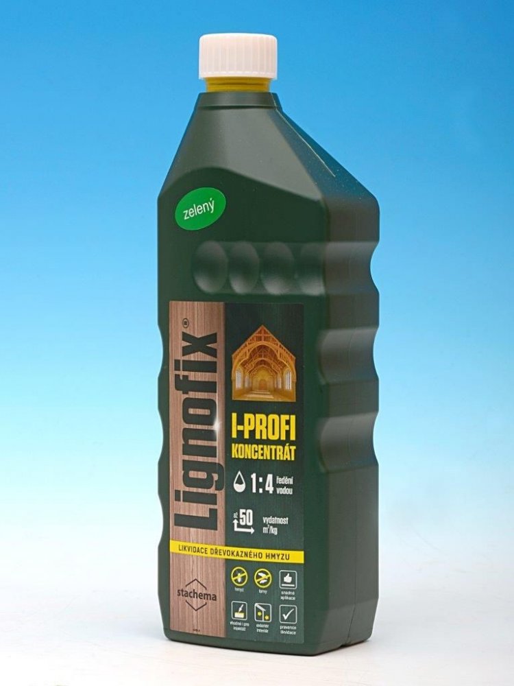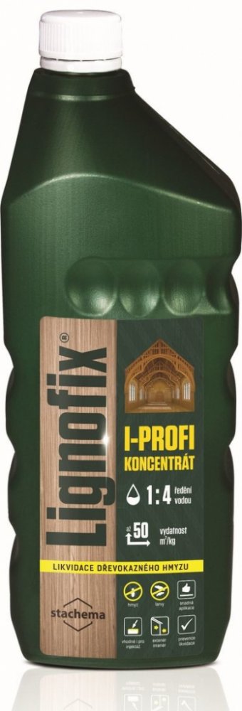 Lignofix I-profi je kapalný přípravek k ošetření dřeva napadeného