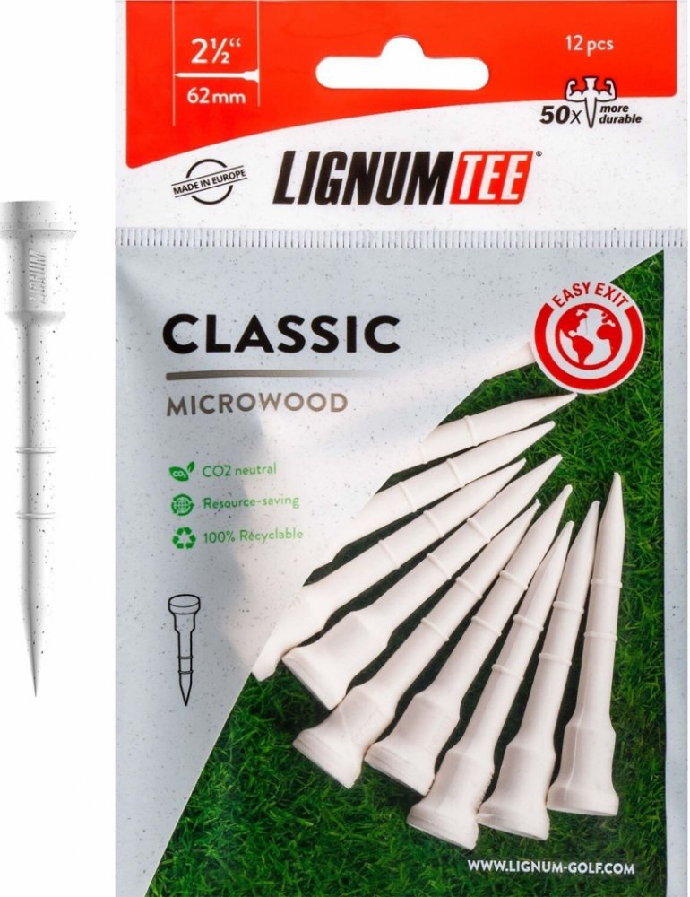 Lignum Tee 62mm představují revoluční přístup k tradičním golfovým týčkám. Jejich konstrukce z Microwoodu nabízí výjimečnou odolnost a flexibilitu, což prodlužuje jejich životnost až 50krát ve srovnání s běžnými dřevěnými týčkami.Kroužkový systém umožňuje hráčům snadno a rychle nastavit požadovanou výšku týčka, čímž se zvyšuje konzistence a kvalita odpalů. Navíc jsou tyto týčka šetrná k životnímu prostředí, protože jsou biologicky rozložitelná a vyráběná z obnovitelných zdrojů.