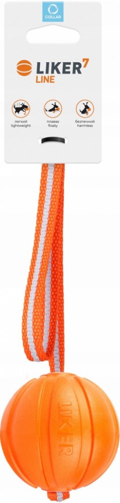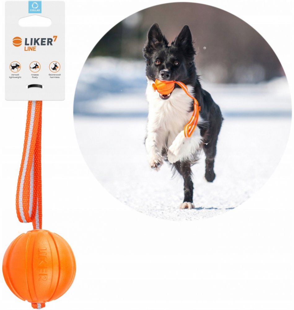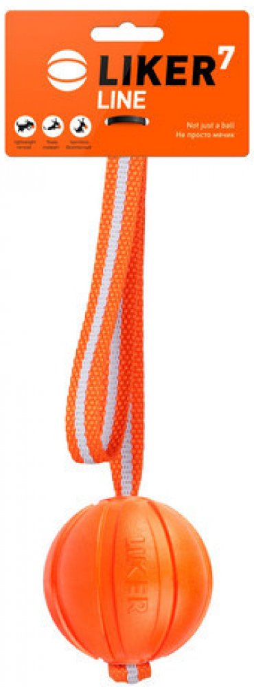 Liker Line 7 míček pro psy 7cm - LIKER LINE je opatřen 35 cm dlouhým pogumovaným popruhem pro lepší házení a přetahování. - LIKER není jen koule! Je to hračka pro psy, kterou si vy a váš mazlíček zamilujete! Unikátní materiál spojuje nejlepší vlastnosti jiných hraček z různých materiálů - je lehký, měkký a pružný, dobře létá, plave, snadno se umyje, je vidět v trávě, na sněhu, zdravotně nezávadný…...